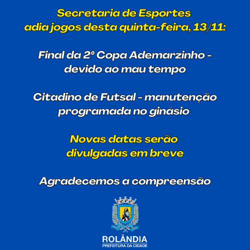 SECRETARIA DE ESPORTES ADIA JOGOS DESTA QUINTA...