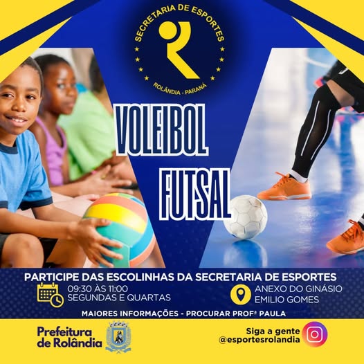 Atenção, população de Rolândia! A Secretaria Municipal de Esportes convida você a participar das Escolinhas de Futsal e Voleibol!   Onde? No Anexo do Ginásio Emilio Gomes, no centro da c...