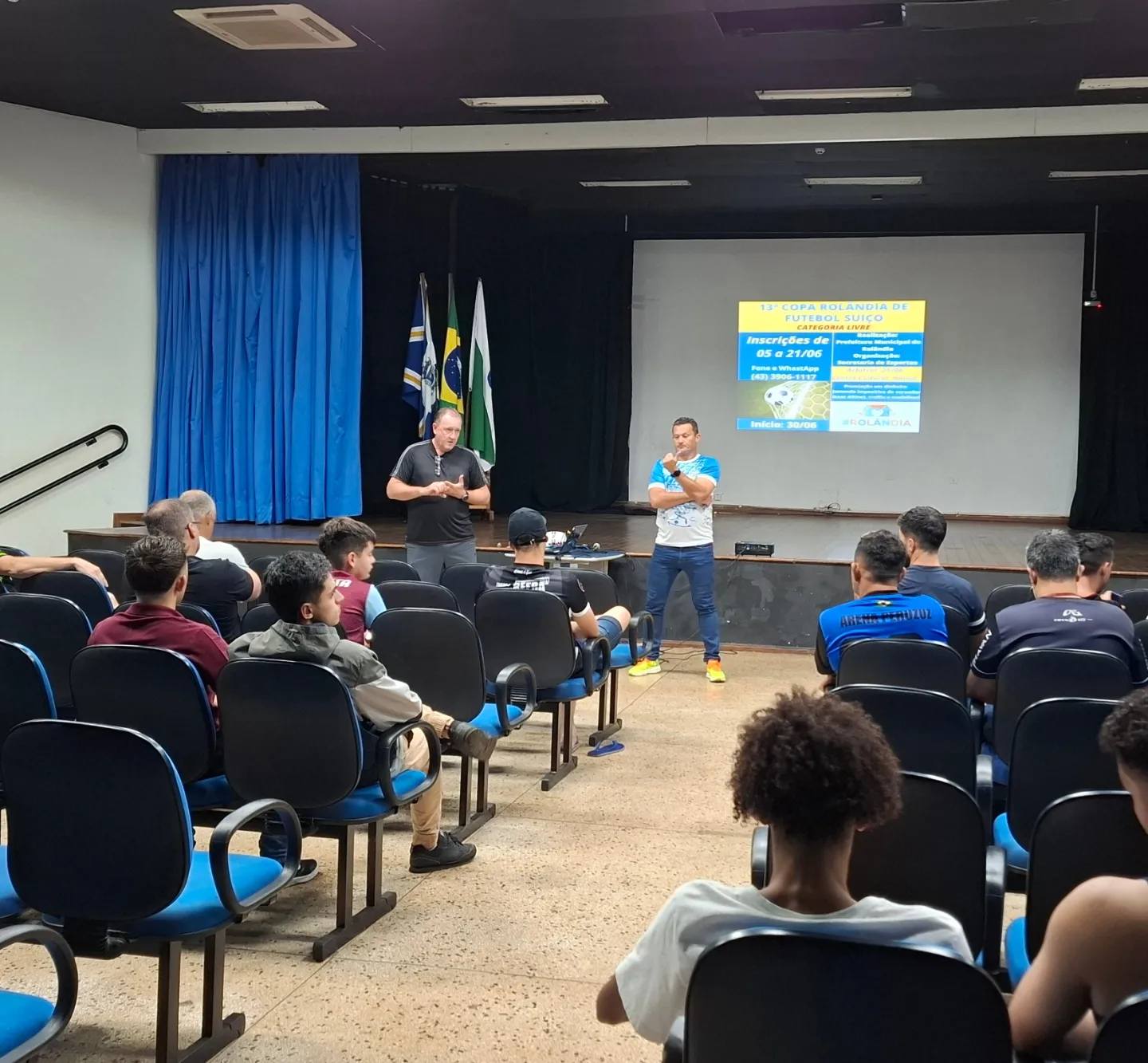 Na noite desta terça-feira, dia 25, no Centro Cultural Nanuk, a secretaria de Esportes realizou o arbitral que definiu o regulamento e a fórmula de disputa da "13° Copa Rolândia de Futebol Suiço".   O secre...