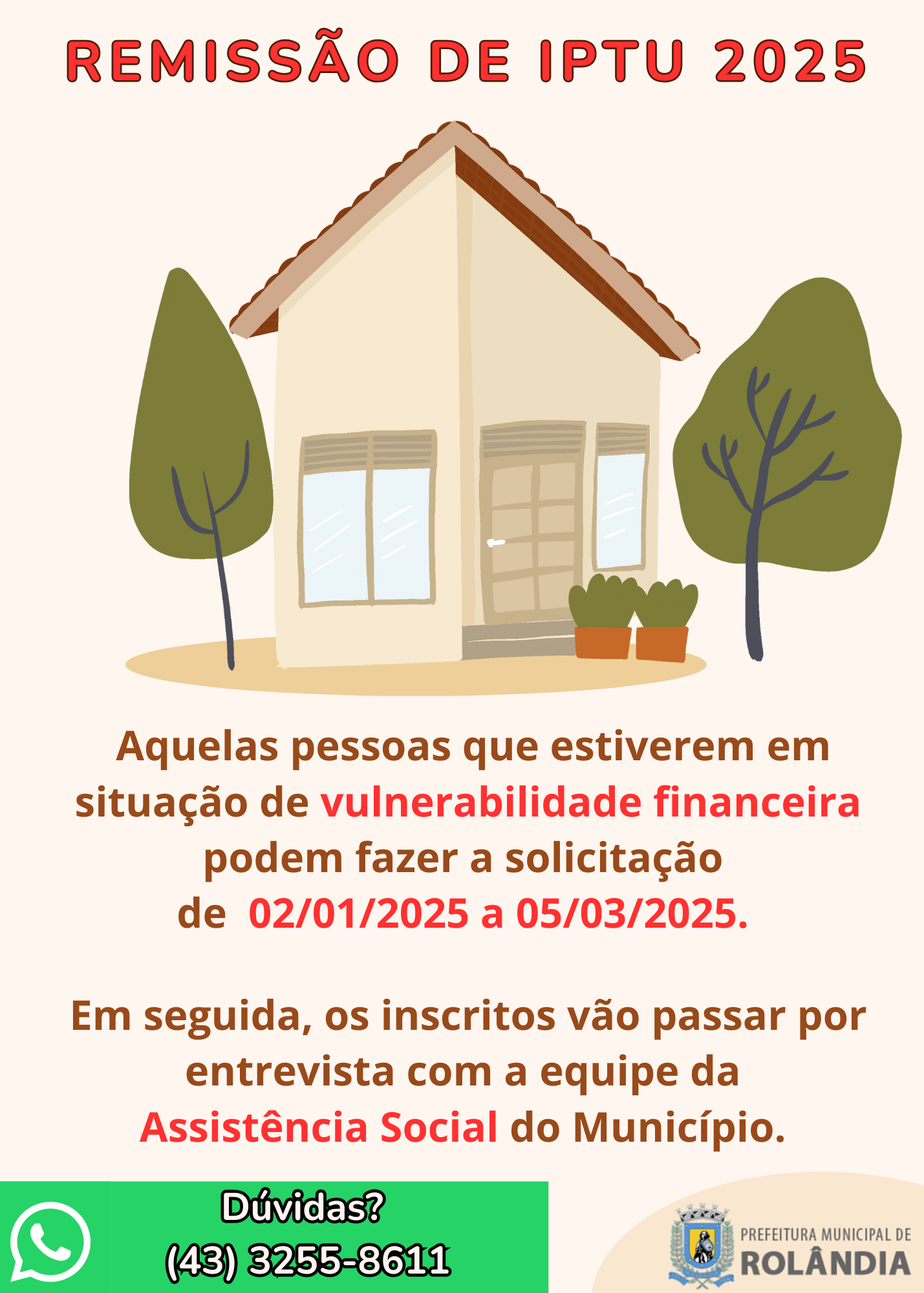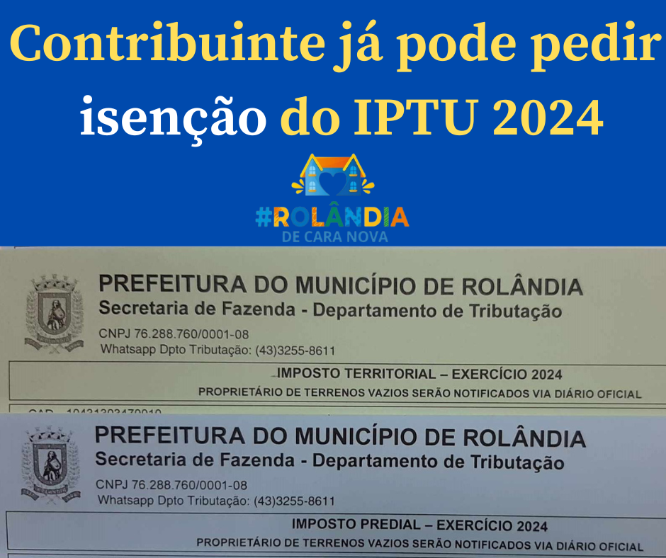 COMUNICADO IMPORTANTE AO CONTRIBUINTE DO MUNICÍPIO DE ROLÂNDIA A Prefeitura Municipal de Rolândia informa que está distribuindo nos endereços o carnê do IPTU 2025. O tributo só pode ser pago a part...