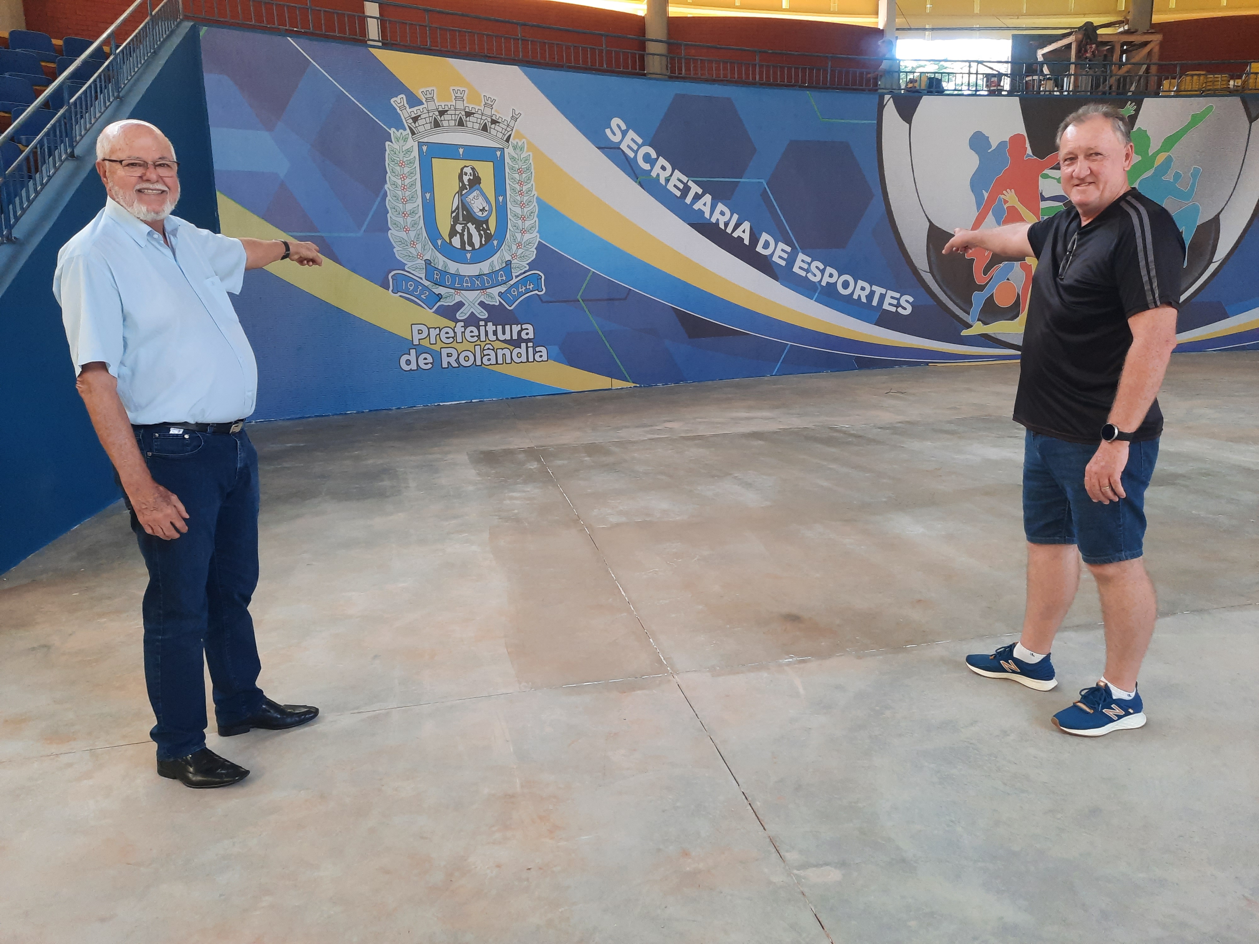 GINÁSIO EMÍLIO GOMES QUASE PRONTO PARA A REINAUGURAÇÃO  O prefeito Ailton Maistro e o secretário de Esportes, Odir Giordani Junior (Polaco), conferiram o andamento das obras de revitalização do G...