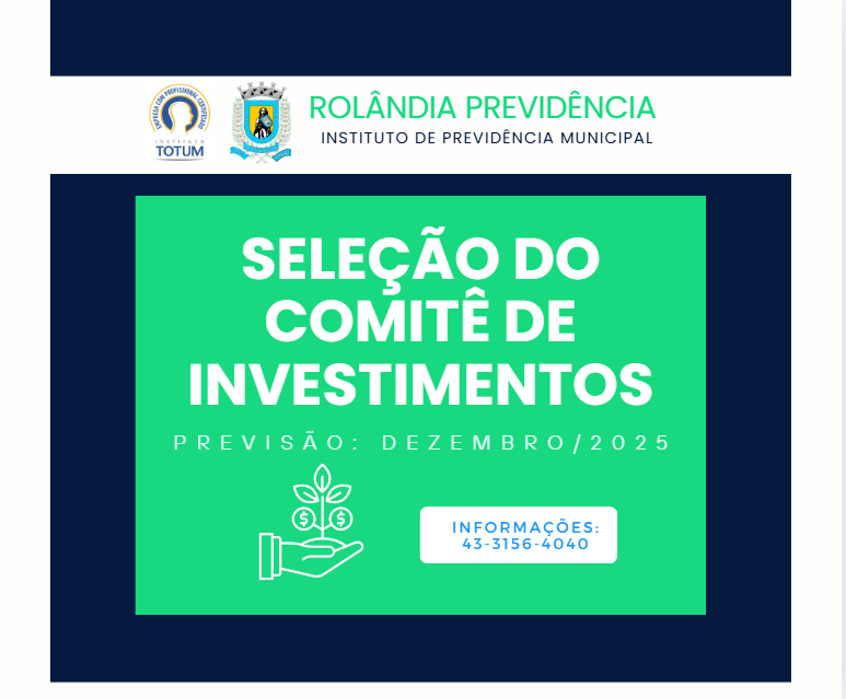O Instituto de Previdência Municipal - Rolândia Previdência informa que em dezembro de 2025, será realizado o processo seletivo para composição do Comitê de Investimentos (COMIN) do In...