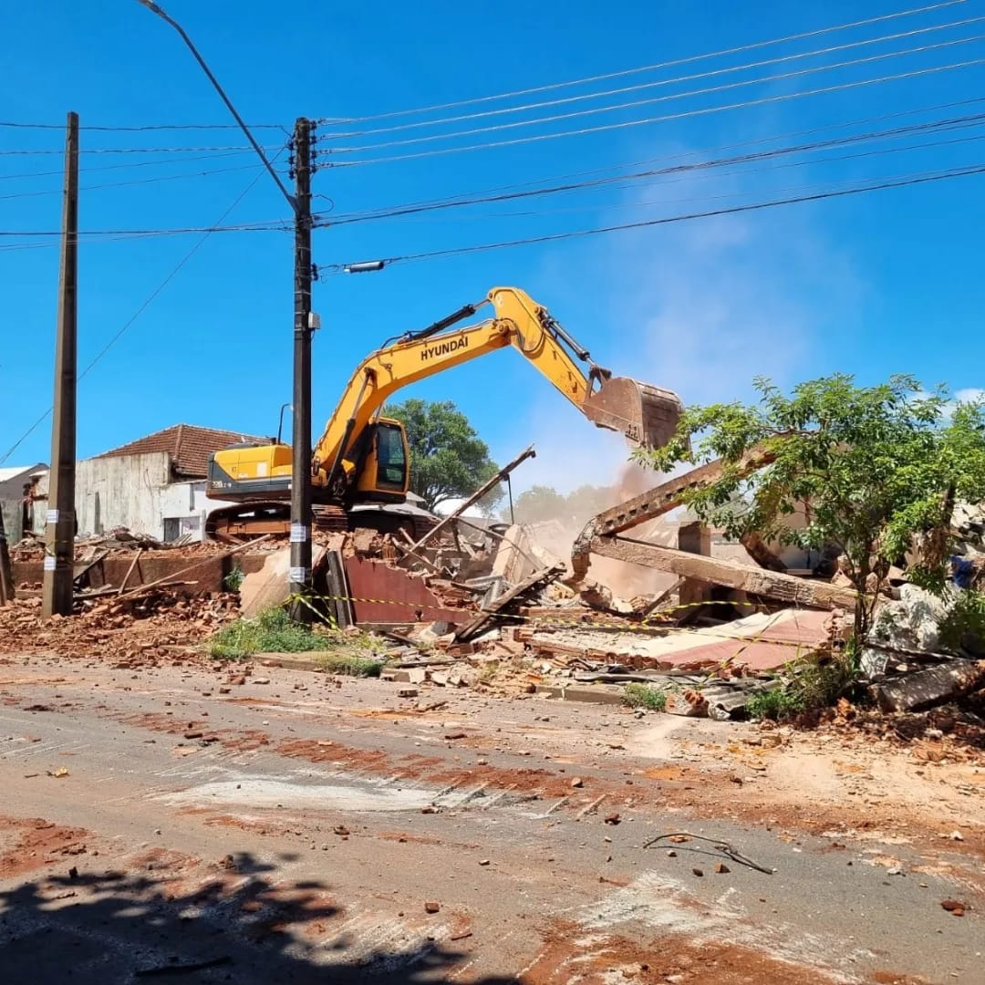 SECRETARIA DE SERVIÇOS PÚBLICOS FAZ DEMOLIÇÃO PREVENTIVA DE IMÓVEL NA ÁREA CE...