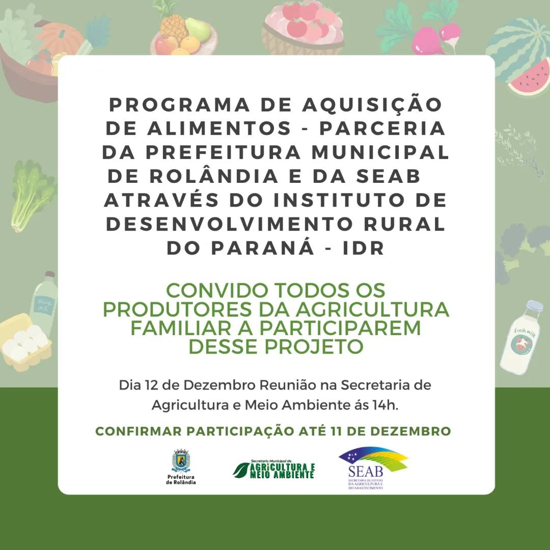 Convite da secretaria de Agricultura e Meio AmbientePara confirmar presença, entrar em contato com o IDR (Antiga EMATER), falar com Katto ou Felipe pelo fone 43 3910-1600....