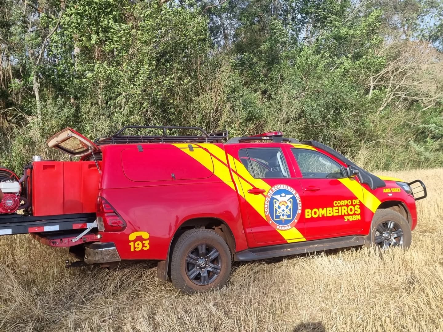 Defesa Civil e Corpo de Bombeiros apagam incêndio em área rural