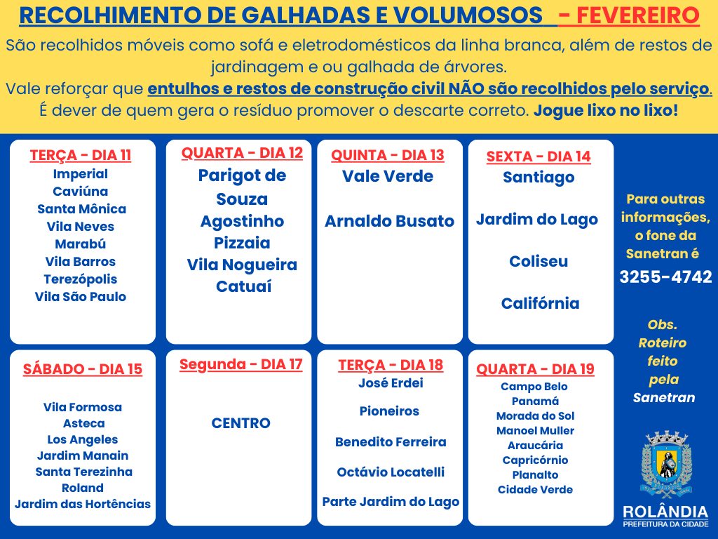 COLETA DE GALHADAS E VOLUMOSOS - SETEMBRO   As Secretarias de Serviços Públicos e de Agricultura e Meio Ambiente informam que a empresa terceirizada que presta serviço ao município, a SANETRAN, passa recolhendo vo...