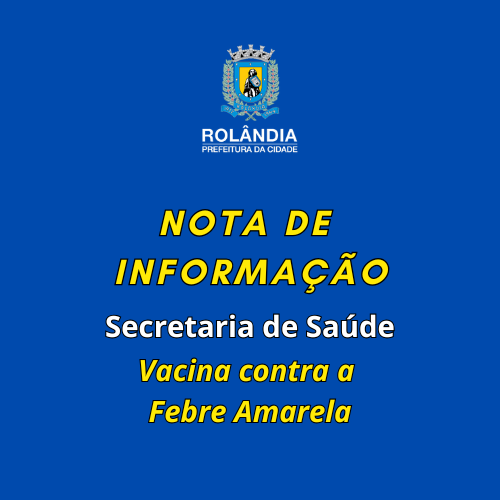ROLÂNDIA TEM VACINA DISPONÍVEL NAS UBS CONTRA FEBRE AMARELA A Secretaria de Saúde de Rolândia alerta a população sobre a importância da vacinação contra a febre amarela.   ...