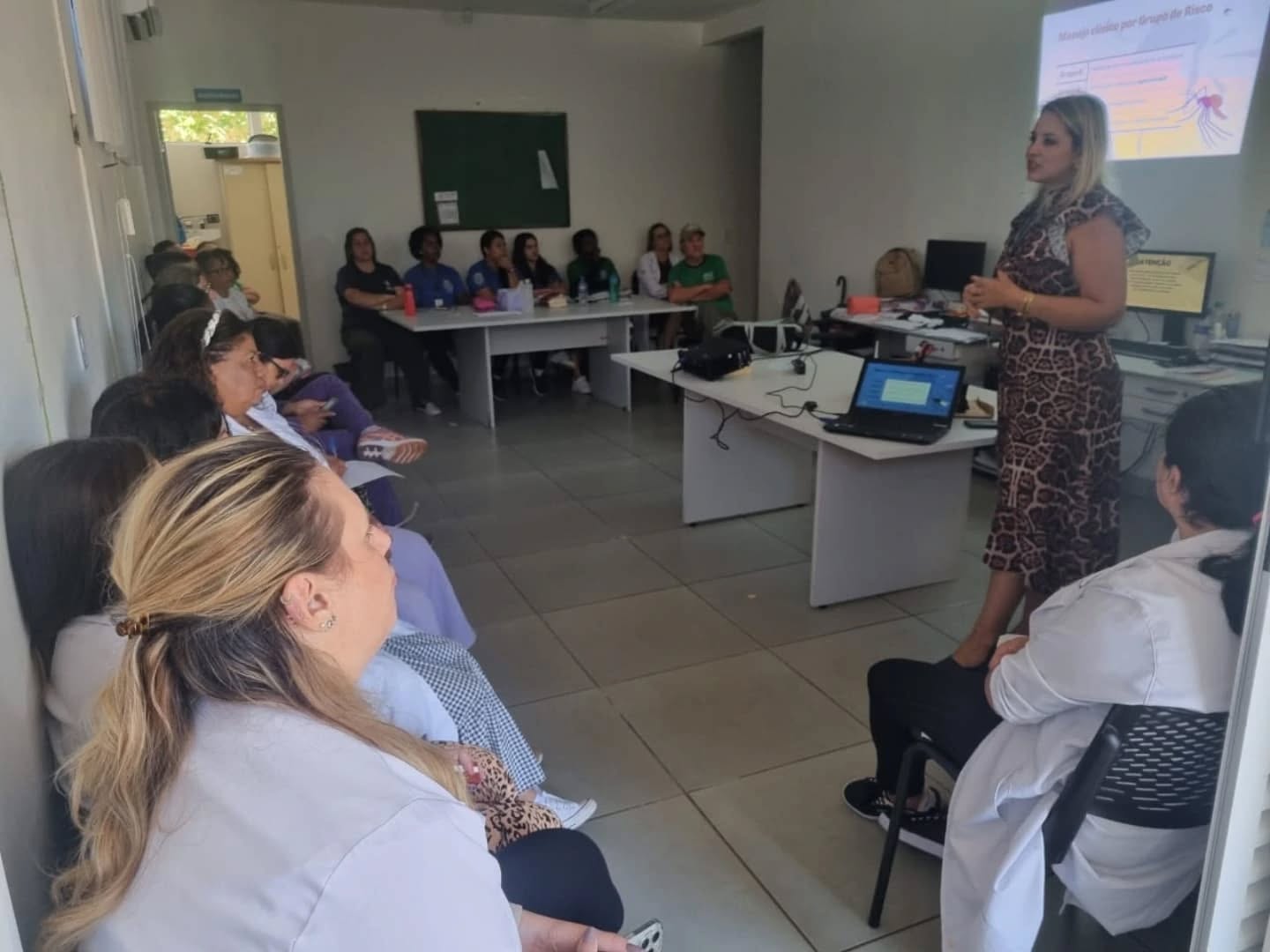 Profissionais da UBS Vila Oliveira participam de capacitação sobre fluxo de tratamento e combate às doenças transmitidas pelo Aedes aegypti   Nesta sexta-feira (21 de março), a gerente de Vigilânc...