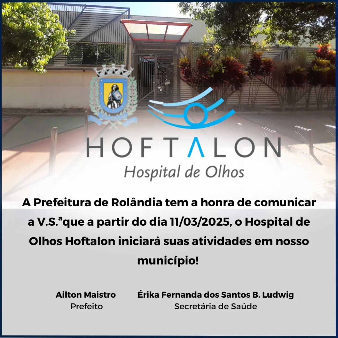 UNIDADE DE ROLÂNDIA DO HOFTALON VAI INICIAR ATENDIMENTOS NO DIA 11 DE MARÇO Um sonho que se transforma em realidade!   Uma parceria entre a Prefeitura de Rolândia, por meio da Secretaria Municipal de Saúde,...