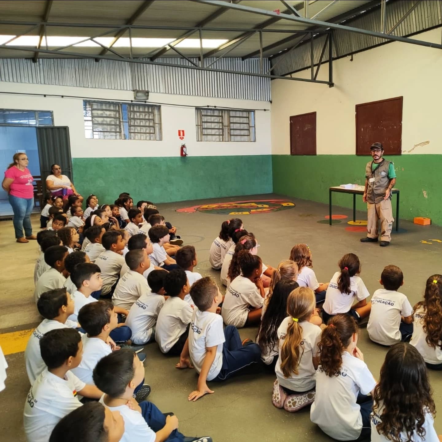 AGENTES DE ENDEMIAS FAZEM TRABALHO EDUCATIVO CONTRA A DENGUE COM ALUNOS DA ES...
