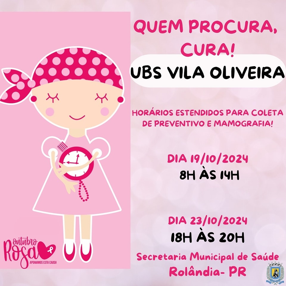 OUTUBRO ROSA EM ROLÂNDIA TEM COMO TEMA “QUEM PROCURA, CURA!"