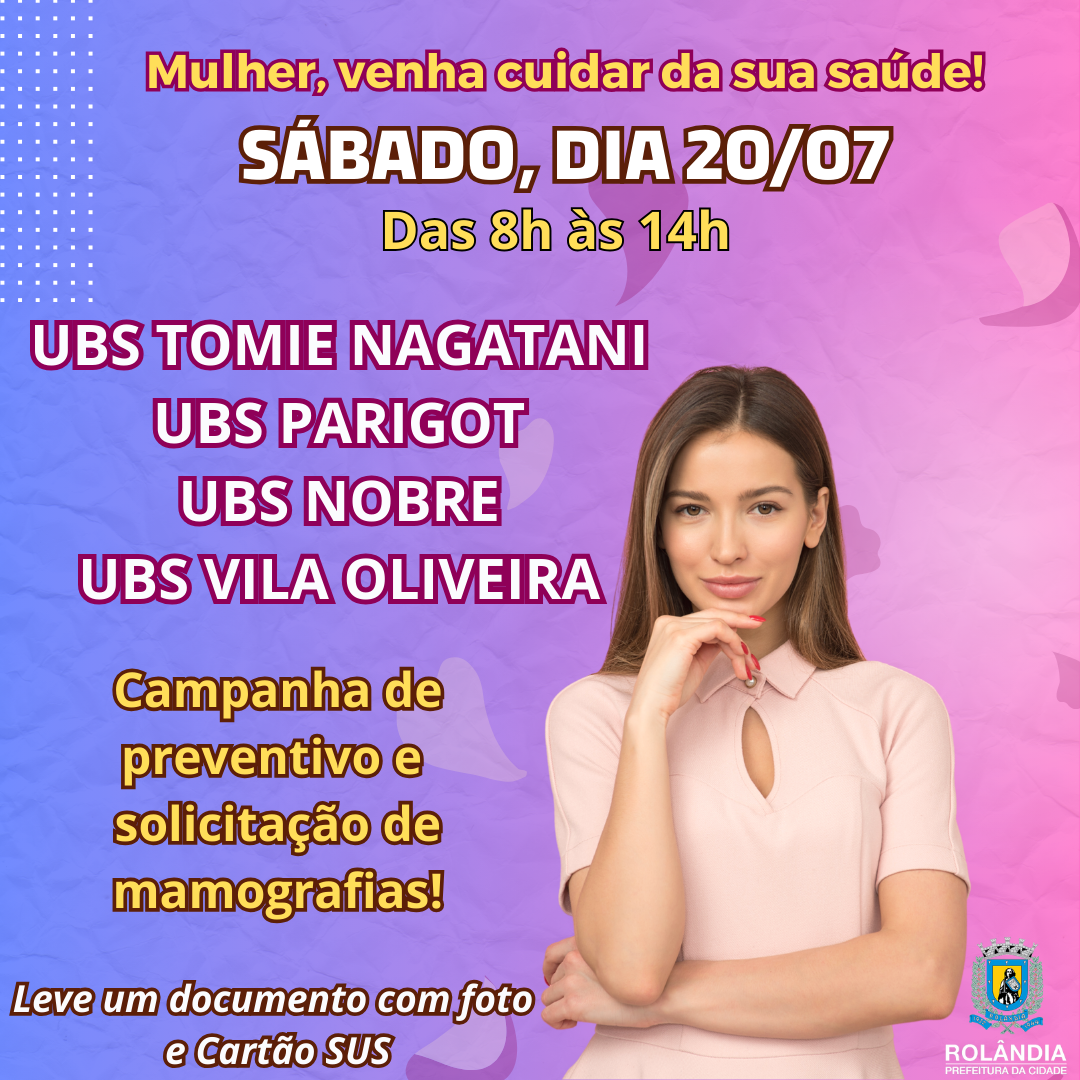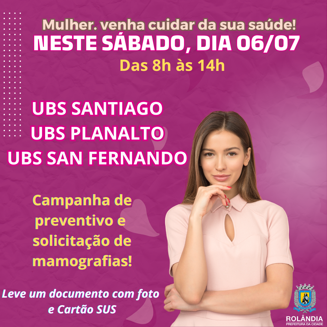 MULHERES DE ROLÂNDIA, VENHAM CUIDAR DA SAÚDE NESTE SÁBADO!