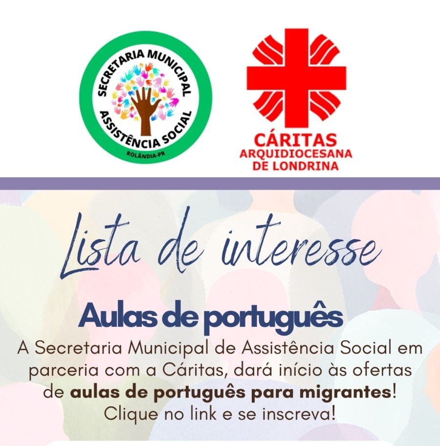VOCÊ QUE VEIO DE OUTRO PAÍS E ESCOLHEU ROLÂNDIA COMO NOVA CASA, VENHA APRENDER A LÍNGUA PORTUGUESA!   A Secretaria de Assistência Social, em parceria com a Cáritas Arquidiocesana de Londrina, tem a alegri...
