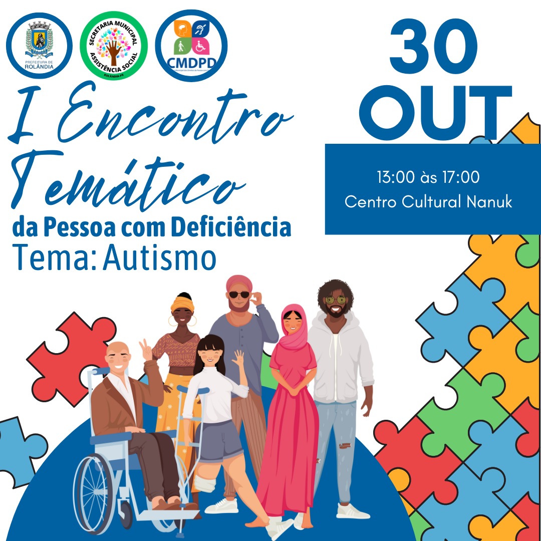 EVENTO DIA 30 DISCUTE O AUTISMO EM ROLÂNDIA A secretaria de Assistência Social e o Conselho Municipal dos Direitos da Pessoa com Deficiência convidam para o “1º Encontro Temático Municipal da Pessoa com Defici&eci...