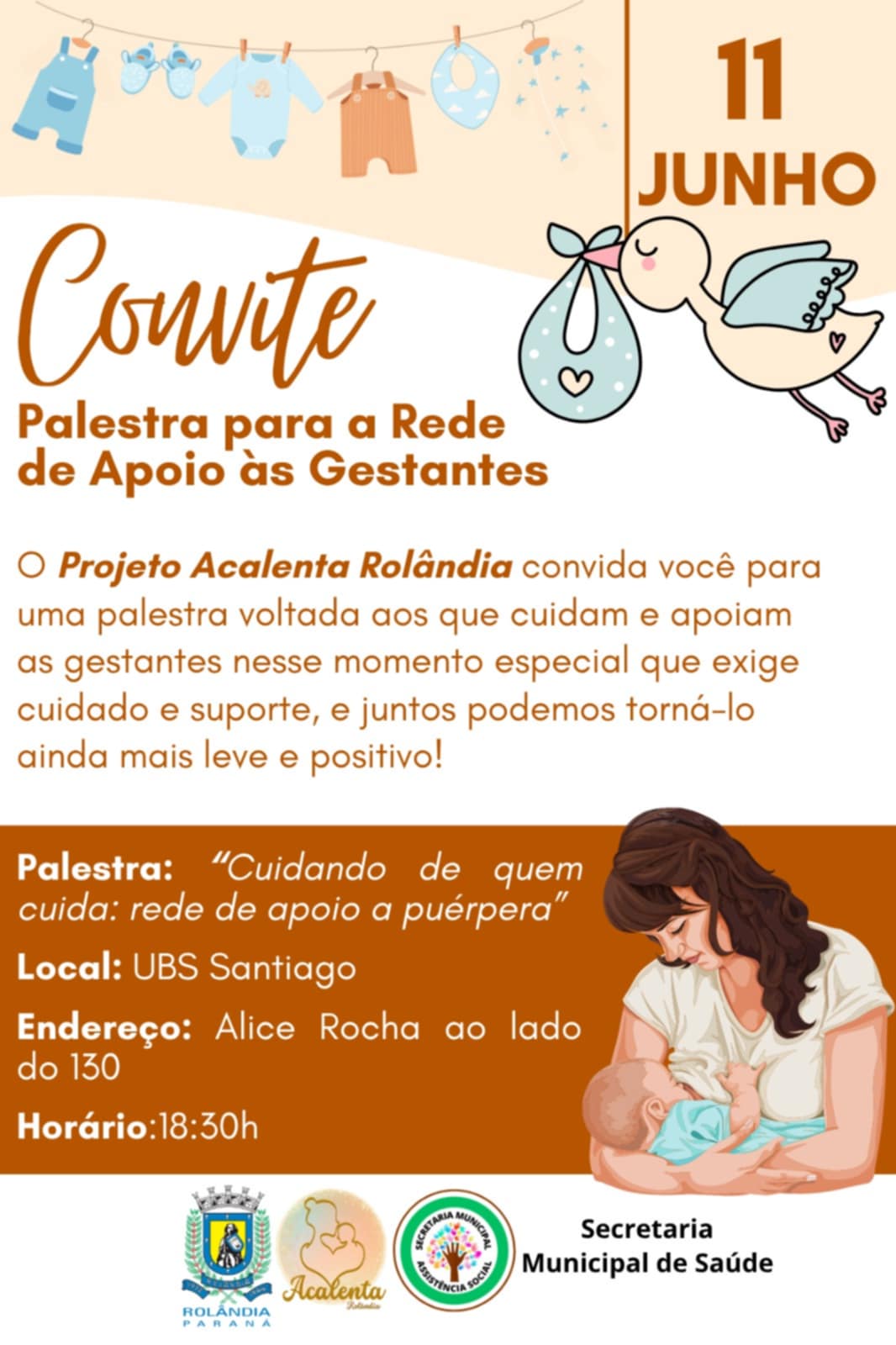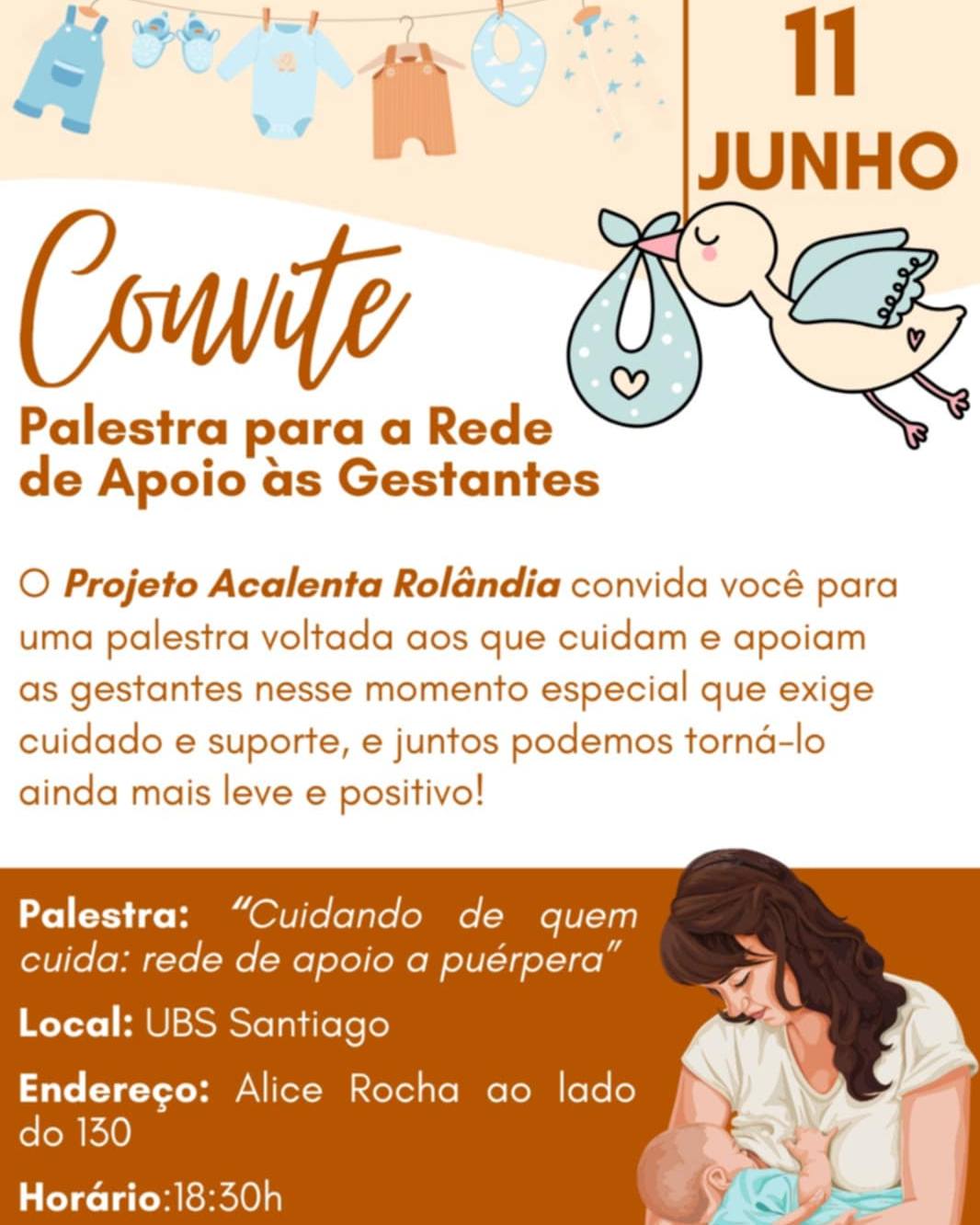 Gestante, venha cuidar da sua saúde e da saúde do bebê no "Acalenta Rolândia"   As secretarias de Assistência Social e de Saúde promovem com sucesso o "Acalenta Rolândia".   Na quar...