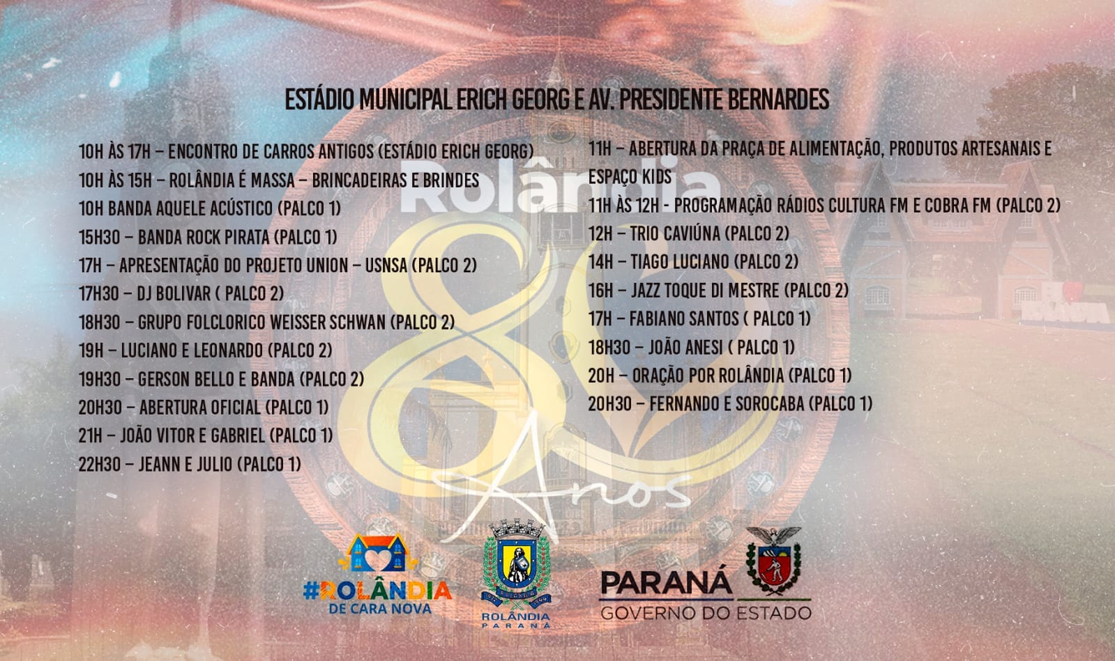 PPA E BRUNO REIS E THIAGO SACUDIRAM A SEGUNDA NOITE DE SHOWS No segundo dia da festa de 81 anos de emancipação de Rolândia, no domingo dia 26 de janeiro, o estádio Erich Georg recebeu um grande público. Os ar...