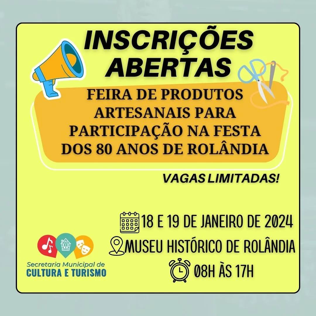 Atenção, Rolândia! Chamamento da secretaria de Cultura e Turismo para você participar da "Festa do aniversário!" Dúvidas, fone e zap (43) 3906-1086! ...
