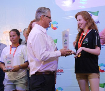 A partir da esq. Jamal Paracat (Assistente da Chefia do Núcleo Regional de Educação de Apucarana, Secretário de Planejamento Valdenir Duque, Márcia Donadon - Coordenadora dos Jogos Escolares do Paraná, Prefeito José de Paula ...