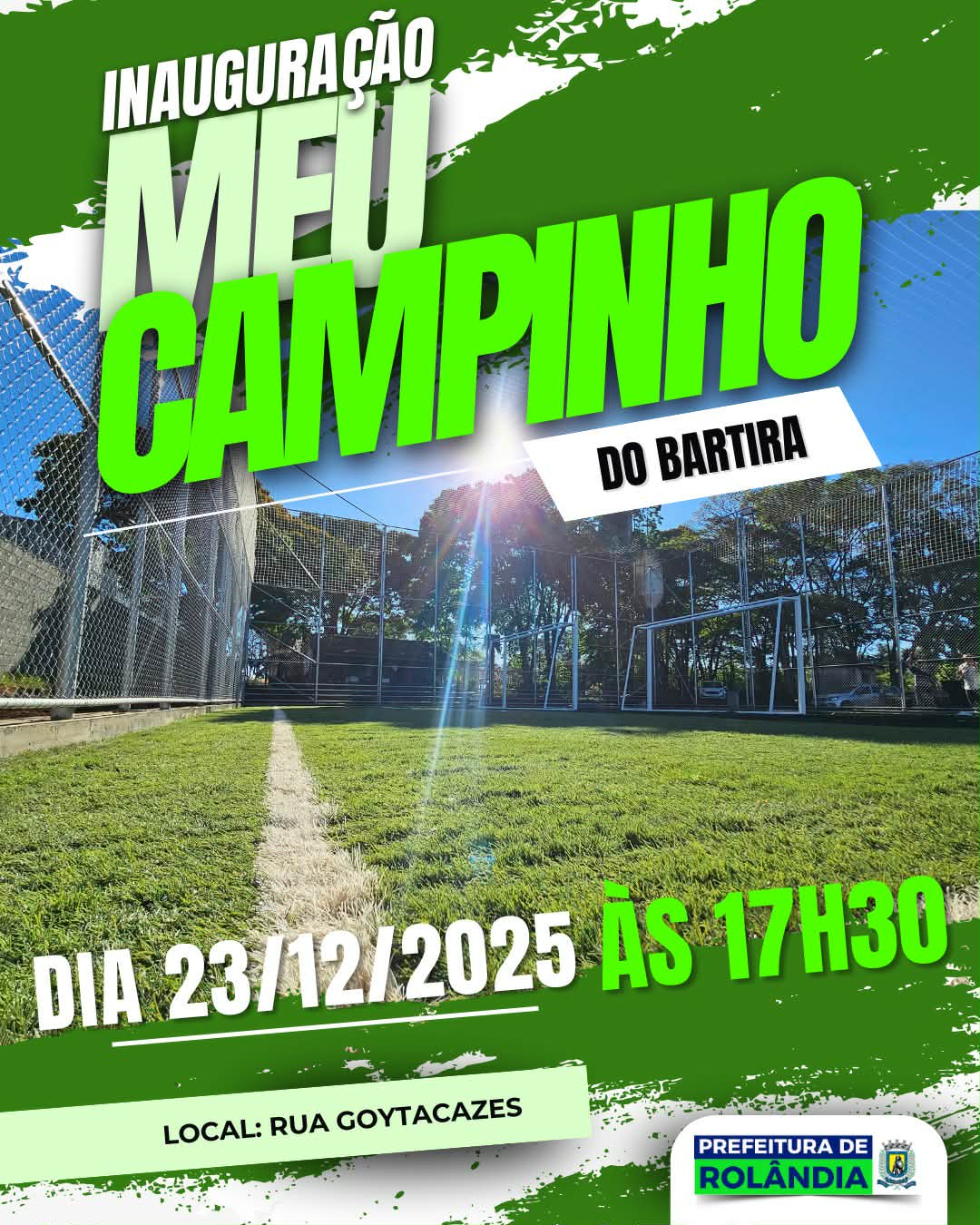 Distrito do Bartira passa a contar com “Meu Campinho” Foi inaugurado nesta terça-feira, dia 23 de dezembro, o “Meu Campinho”, na Rua Goytacazes, no distrito do Bartira. O espaço dispõe de campo de fu...
