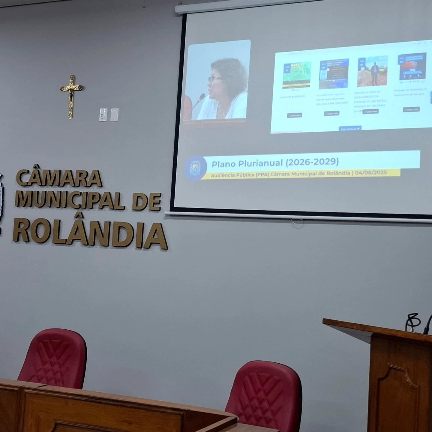 A Prefeitura de Rolândia, por meio da secretaria de Finanças, com apoio da Câmara Municipal de Rolândia, por meio da Comissão da Ordem Econômica e Social, realizou a SEGUNDA de uma série de quatro audiências públicas, com a organização do Departamento de Orçamento, para a elaboração da Lei do Plano Plurianual (PPA) de 2026 - 2029, que é um instrumento de planejamento de médio prazo com as diretrizes, objetivos e metas para o município.
