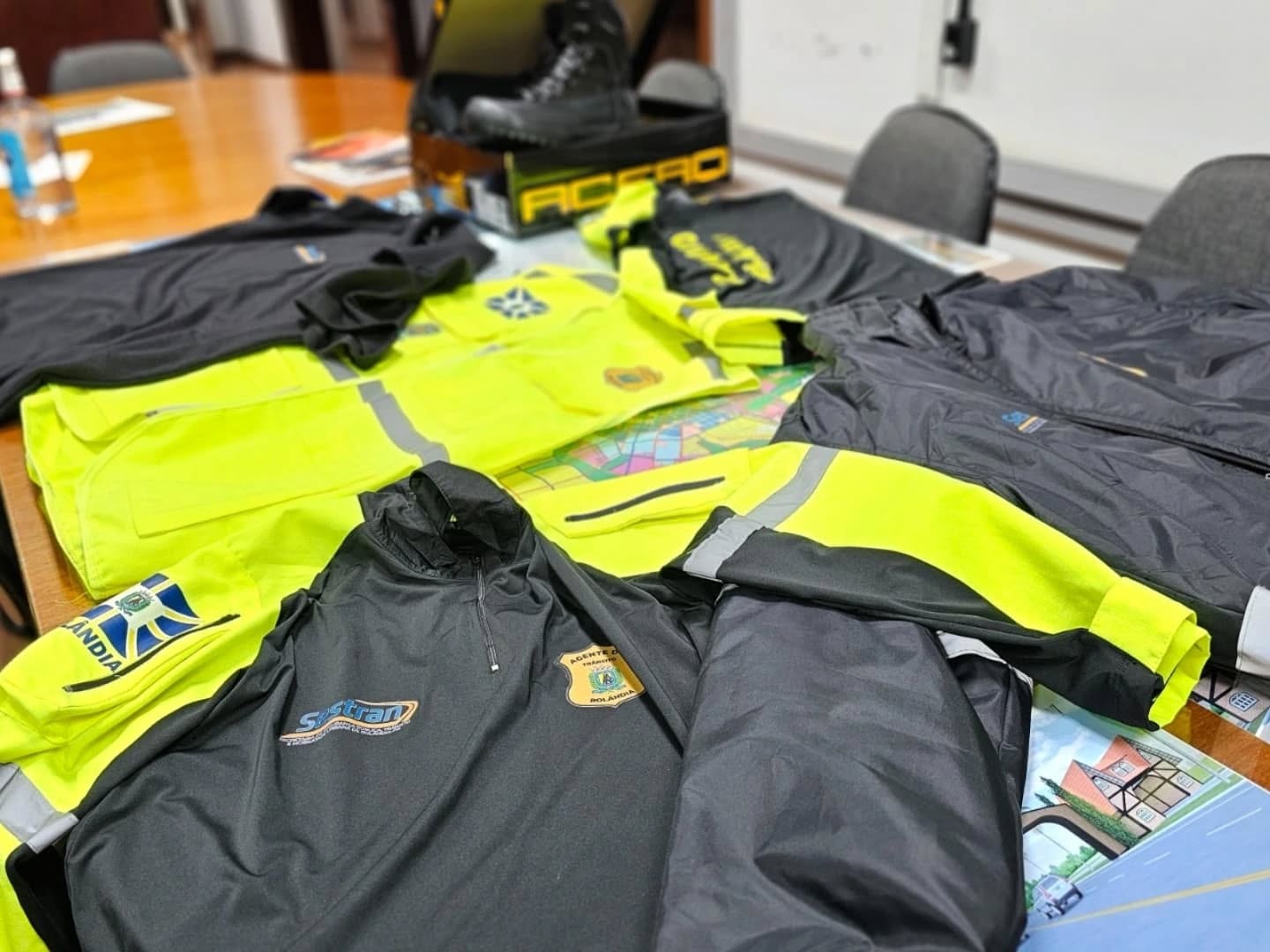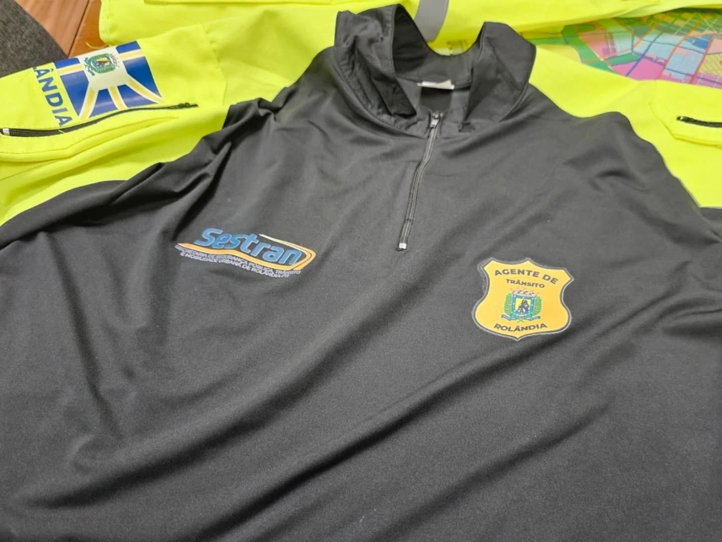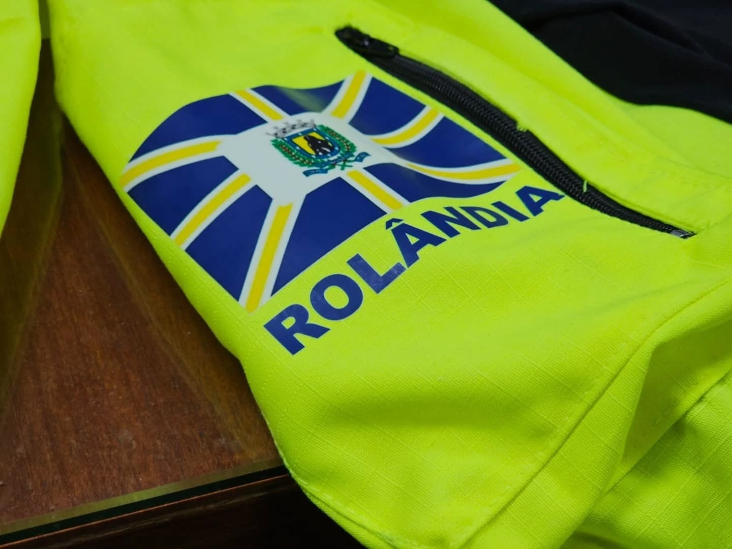 O prefeito Ailton Maistro e o secretário da pasta, Isaac Altino, receberam os materiais e apresentam aos rolandenses os uniformes dos agentes de trânsito.