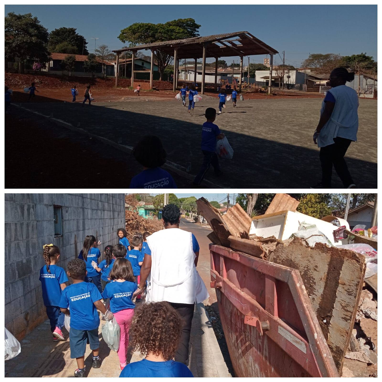 Como prática, a professora planejou um passeio ao entorno do espaço, para observarem e também recolher alguns lixos descartáveis que eles vissem pelas ruas.