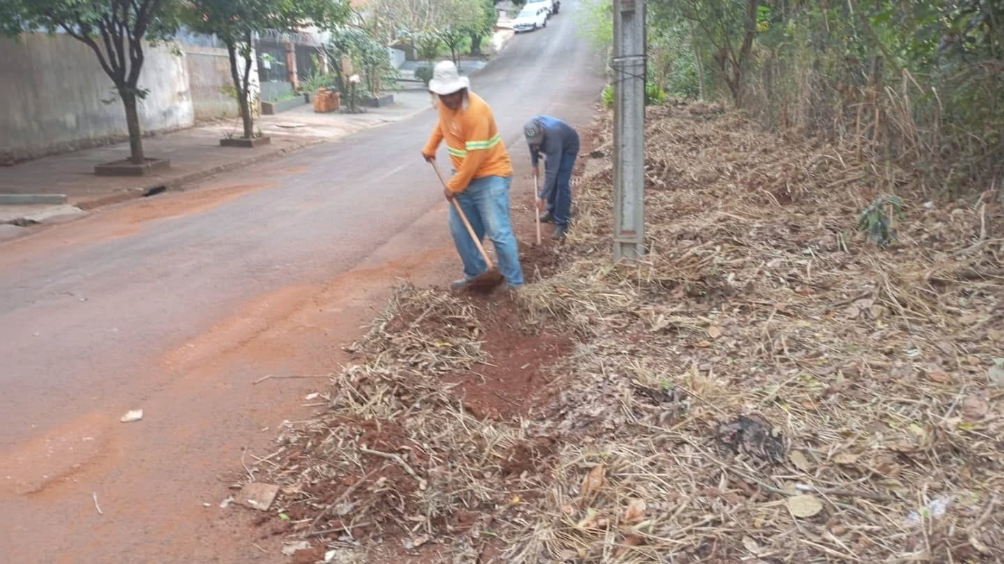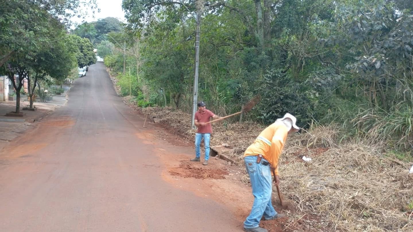 Equipes das Secretarias de Infraestrutura e de Serviços Públicos promovem um grande mutirão de limpeza e roçagem no entorno no Jardim Caviúna. Aqui, o serviço na Rua Francisco Tonsic. Confira o "antes" e o "depois".