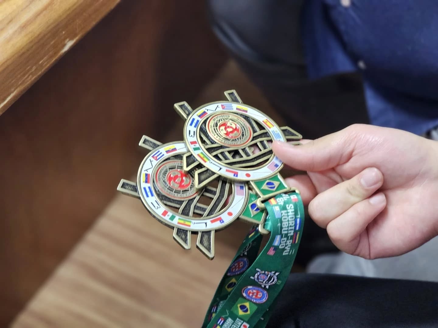 Os dois atletas treinam na Academia de Karatê Mori, no distrito de São Martinho, e participaram do Mundialito de Karate-do e Kobudo Shinshukan, realizado em Praia Grande/SP, na semana passada.
