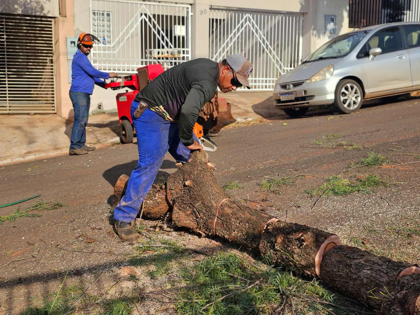 O prefeito Ailton Maistro, o secretário de Agricultura e Meio Ambiente, Lucas Schauff, o diretor de arborização, Miguel Consani Nogueira, o diretor Renan Andrade e a fiscal Alessandra Silva acompanharam o início dos trabalhos, no Jardim Água Verde, na tarde desta segunda-feira, dia 1º de setembro.