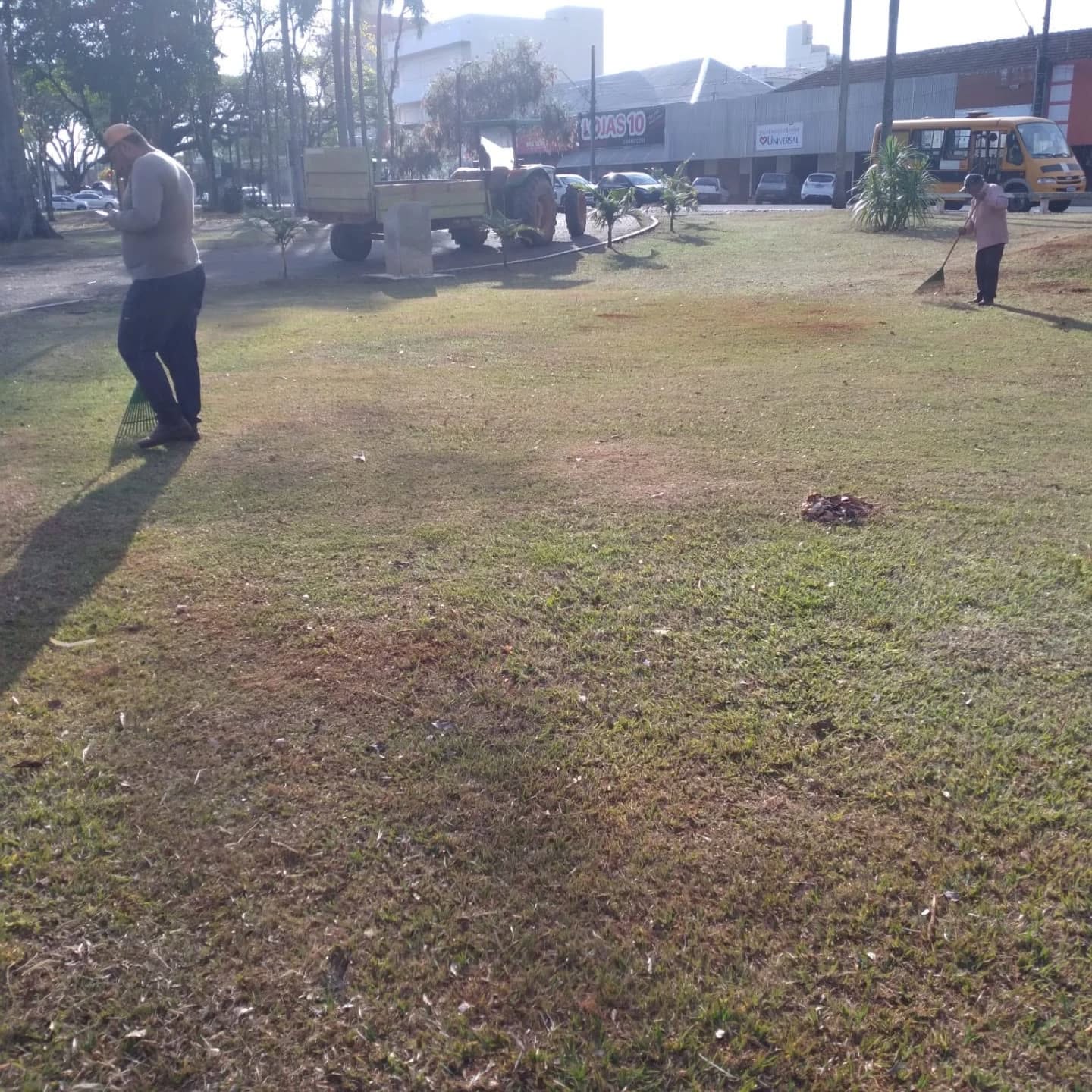 Equipes das Secretarias de Infraestrutura e de Serviços Públicos promovem um grande mutirão de limpeza e roçagem na Praça Castelo Branco e no entorno da Rodoviária.