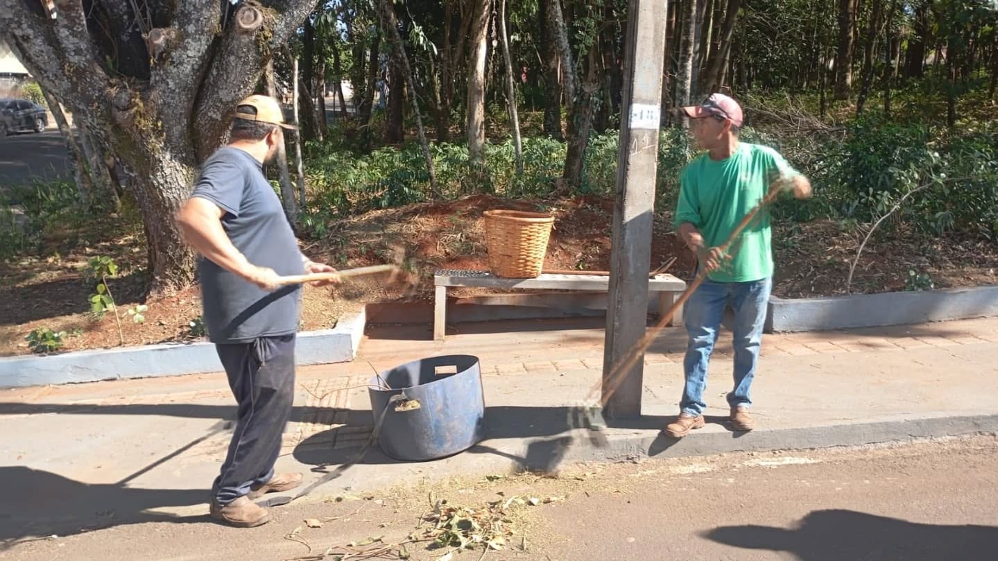 Equipes das Secretarias de Infraestrutura e de Serviços Públicos promovem um grande mutirão de limpeza e roçagem no entorno do Bosque Johannes Schauff, área central.