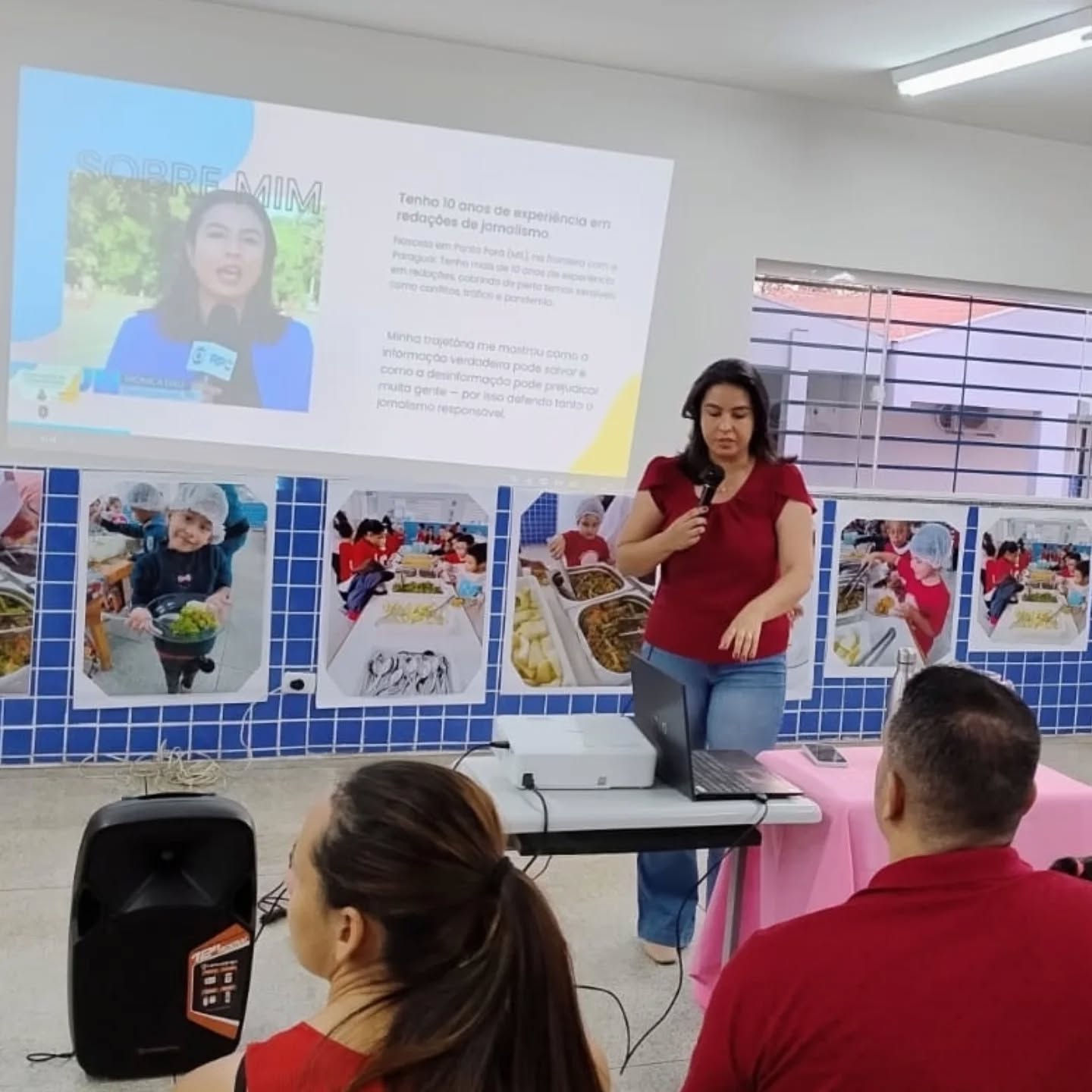 Mônica foi muito solícita, teve uma fala pontual e de extrema importância, instrumentalizando os presentes com mecanismos para saber como agir para saber se um fato é verídico ou é um boato.