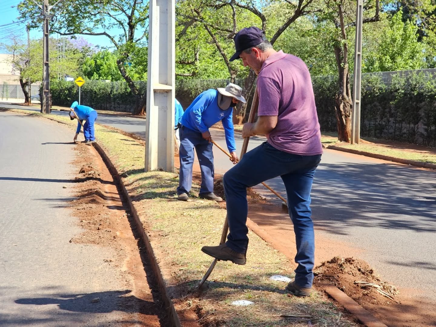 Equipes das Secretarias de Infraestrutura e de Serviços Públicos promovem um grande mutirão de limpeza, capinagem e roçagem nos canteiros e espaços públicos na Avenida Atlanta, que corta diversos bairros da cidade.