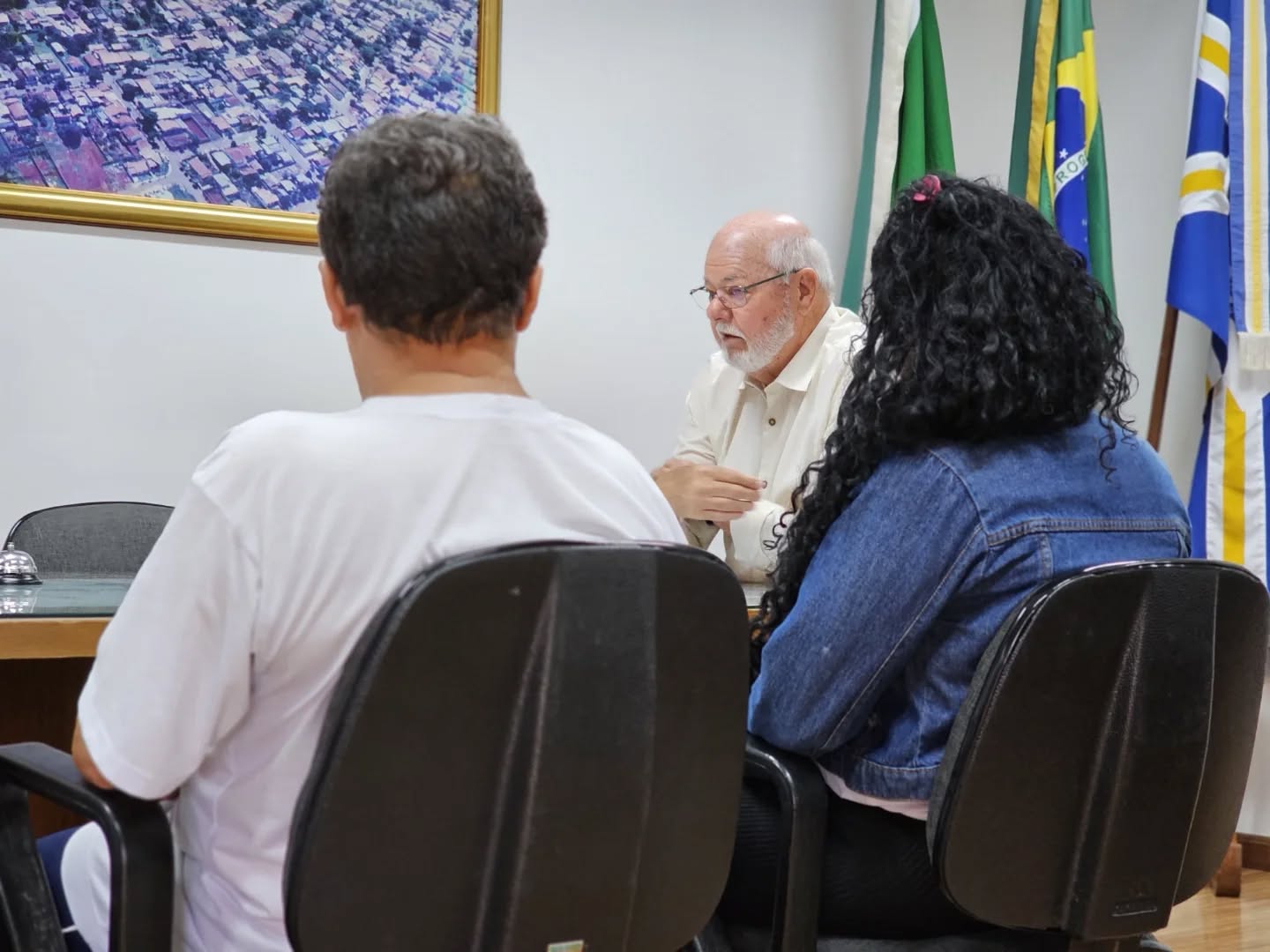 A professora Regina Naves está lecionando sobre os Poderes Constituídos e os alunos Bruno, Nataly, José, Luciana, Maria, Wesley e Pietra, junto com a cuidadora Márcia, vieram conhecer o Poder Executivo do Município, e foram recebidos pelo prefeito Ailton Maistro.