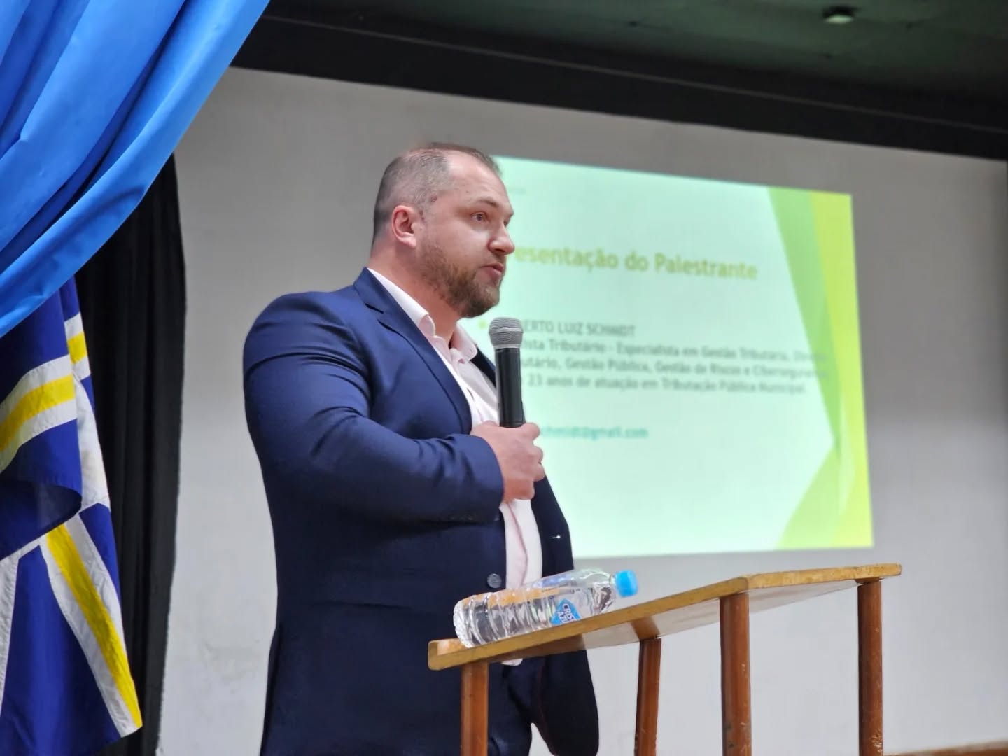 A palestra no Centro Cultural Nanuk, com o analista tributário Gilberto Schmidt, esclareceu aos presentes sobre os impactos da reforma tributária, que entra em vigência em 1º de janeiro de 2026, nos impostos municipais.