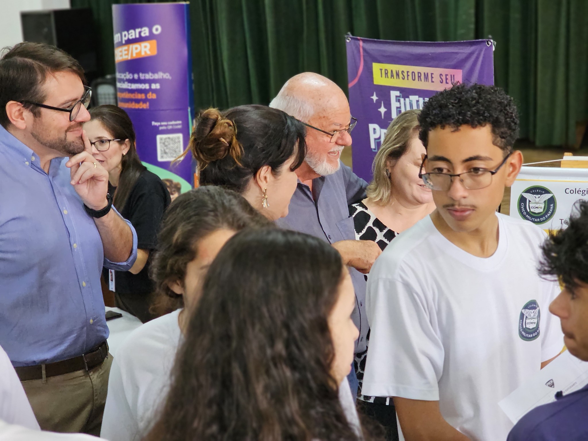 O prefeito Ailton Maistro, o secretário de Desenvolvimento Econômico, Alexandre Farina, a secretária de Educação, Leise Camargo, o presidente da Inovalândia, Adauto Flugel, servidores municipais, representantes das empresas parceiras, convidados, professores e os estudantes participaram do produtivo evento.