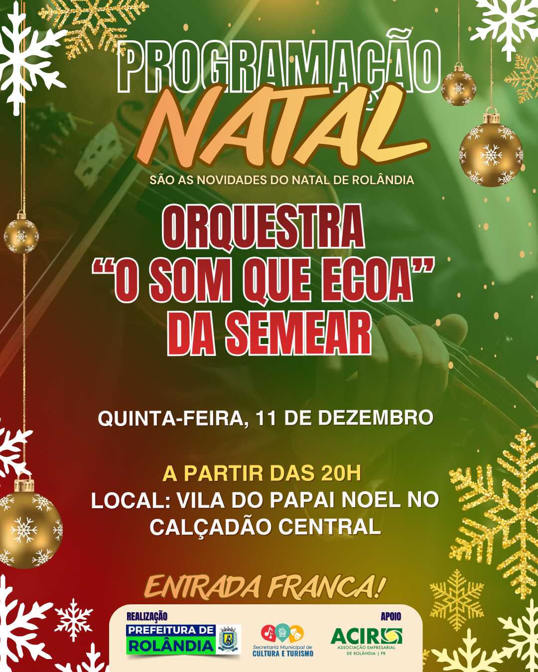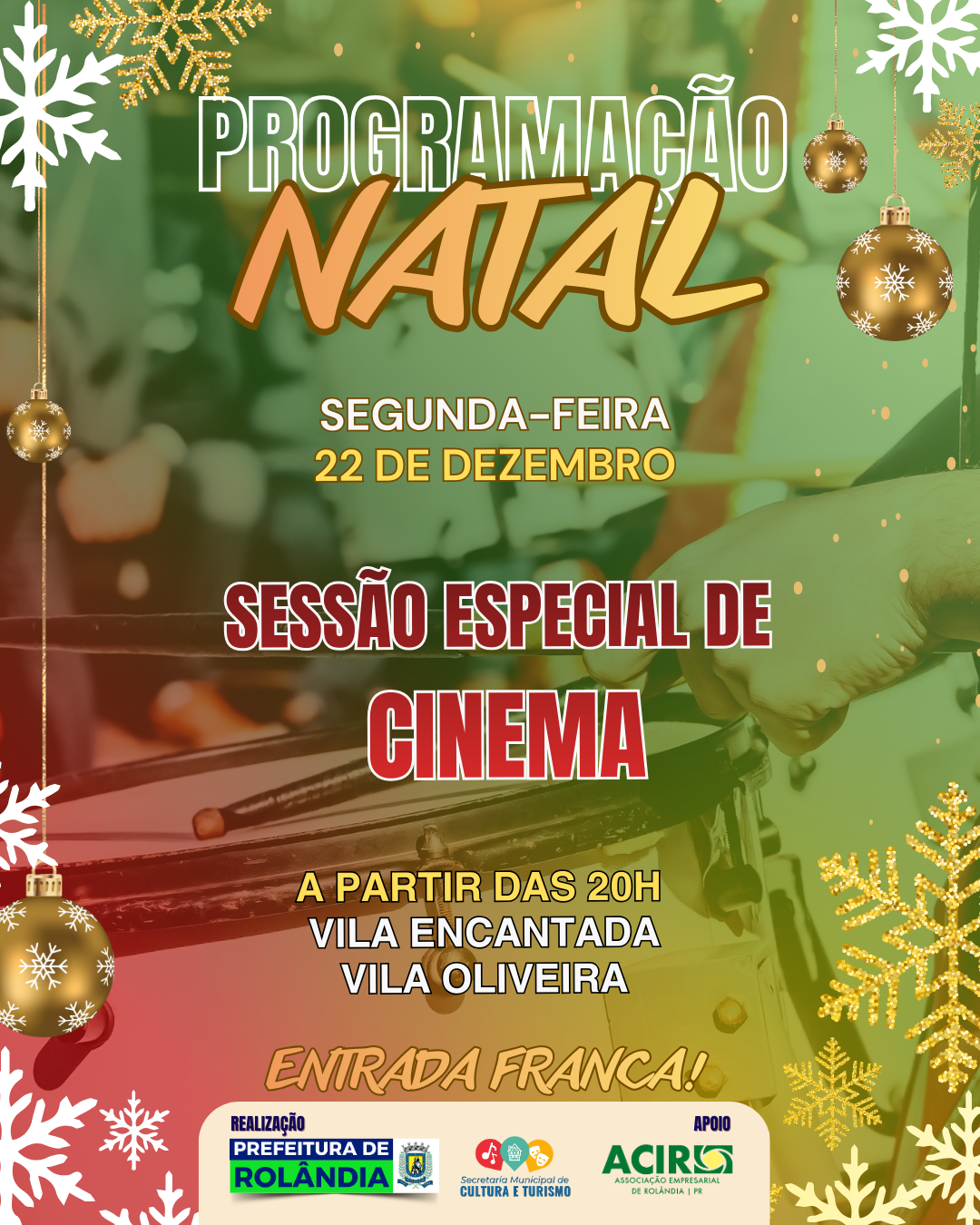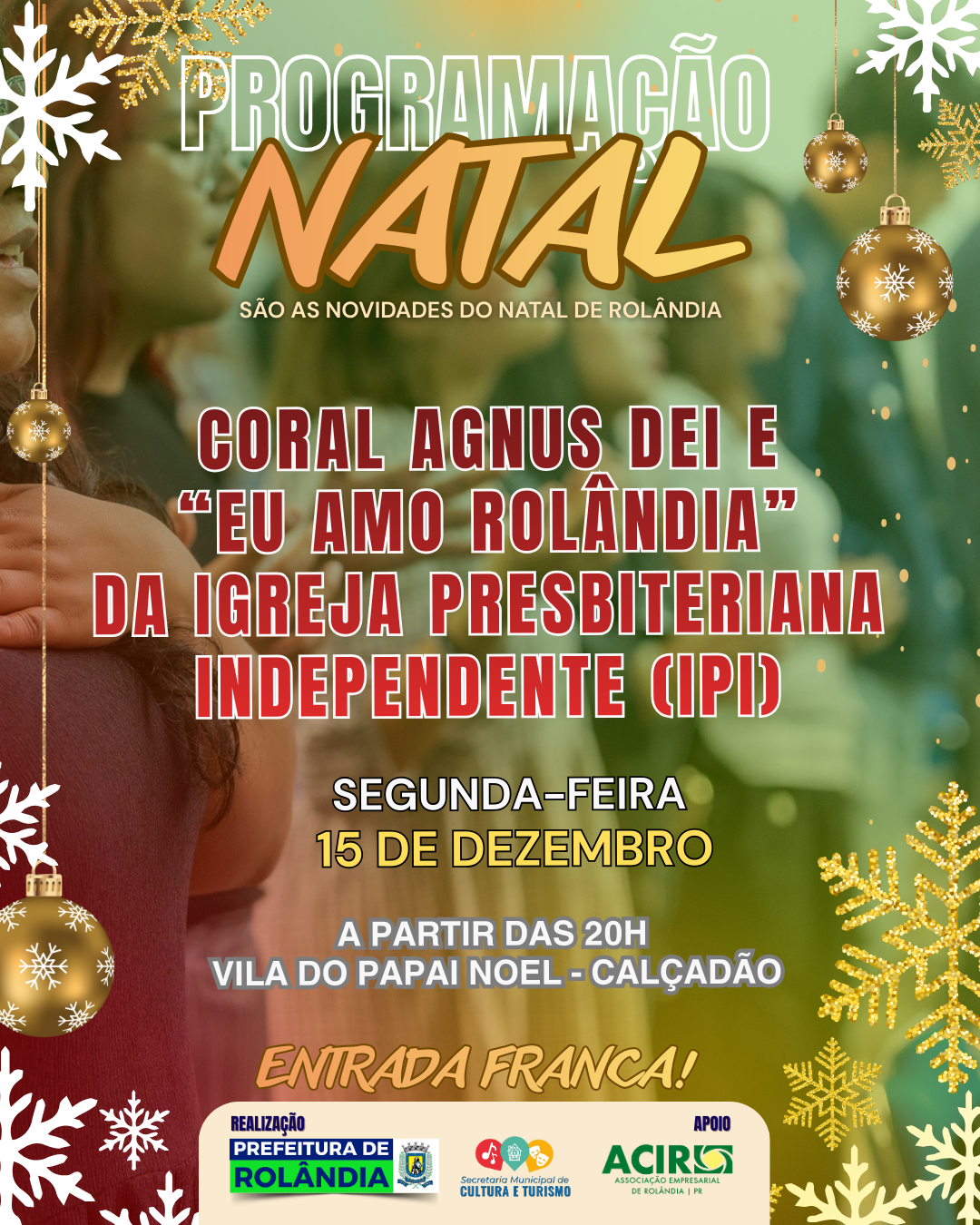 A Prefeitura de Rolândia, por meio da secretaria de Cultura e Turismo, divulga ajustes na programação do Natal 2025 “Brilha a gratidão”!