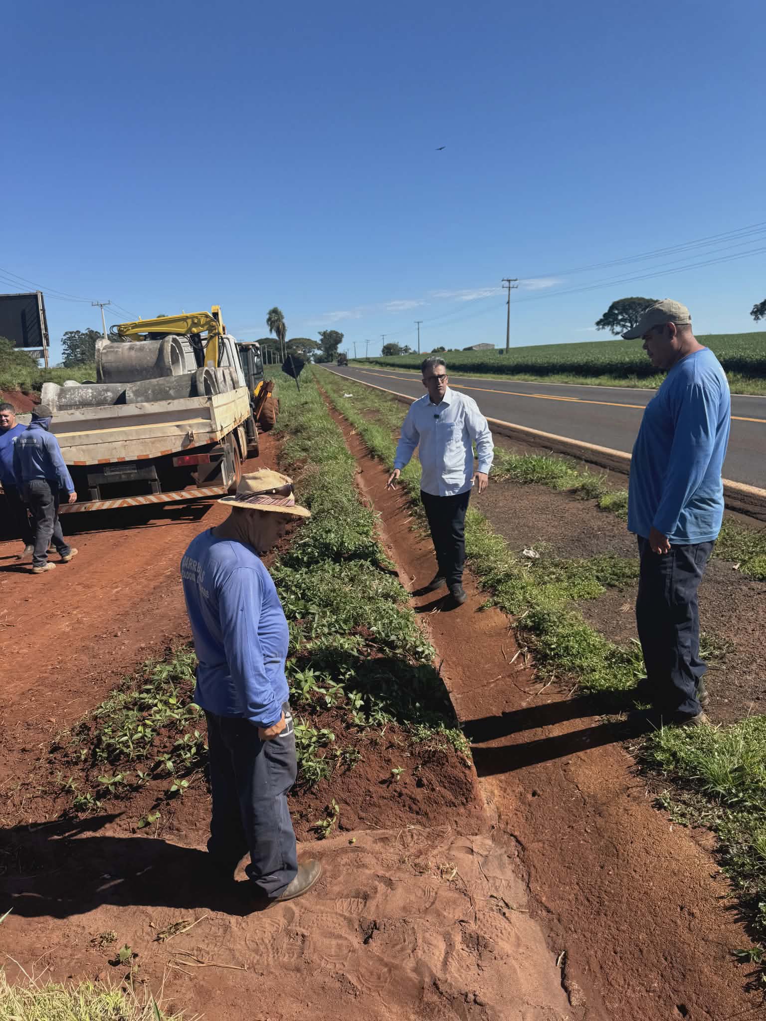 O DER cedeu o material e a Prefeitura entra com a mão-de-obra. Tubulações mais largas vão ser implantadas na região para evitar que a água da chuva atrapalhe o ir e vir dos usuários do trecho, além de garantir aos agricultores e produtores rurais do entorno mais segurança para escoar a produção.