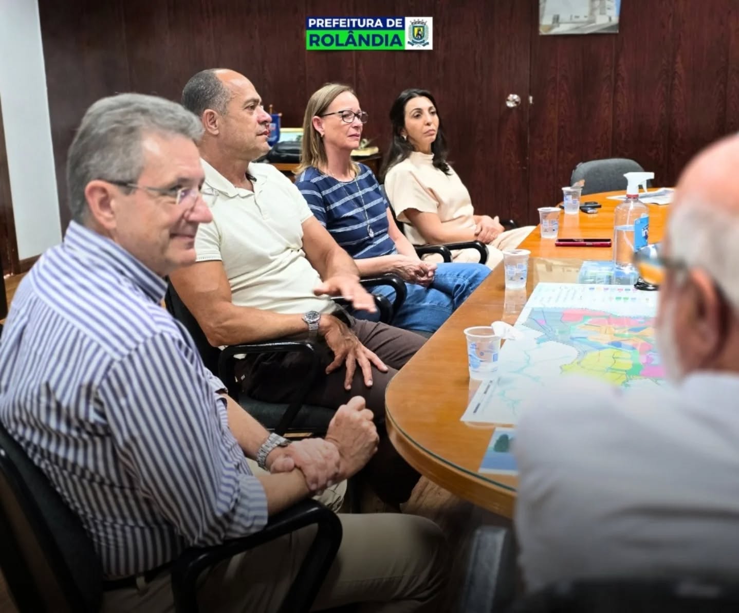 Estiveram no encontro, detalhando o processo, pela Paraná Projetos, Guilherme Moletta e Marcus Vinícius Brito; e pela Fipe, Malú Salem e Illana Bonfim. Eles demonstraram o plano de trabalho ao prefeito, Ailton Maistro; ao vice-prefeito Horácio Negrão; a presidente da ACIR, Maria Fernanda Casado Serpeloni; a presidente do CODESE Catarina Schauff Zaneti; e aos secretários de Desenvolvimento Econômico, Alexandre Farina; e Agricultura e Meio Ambiente, Lucas Schauff.