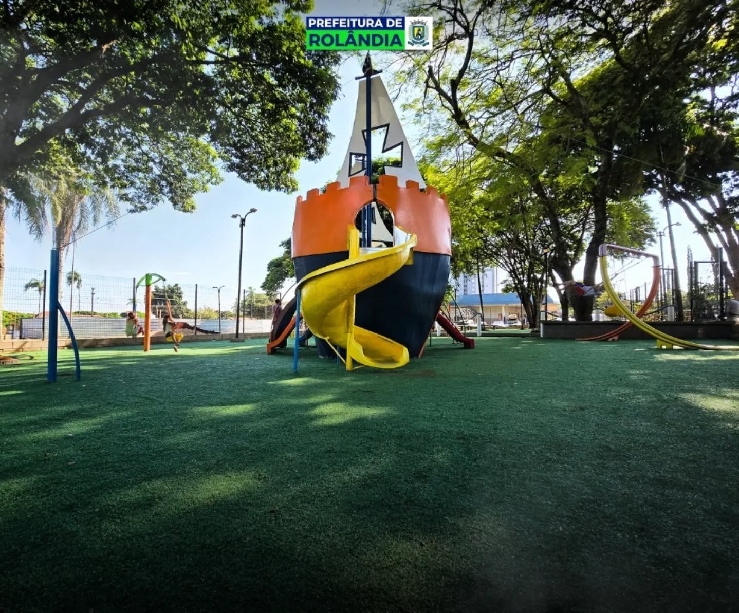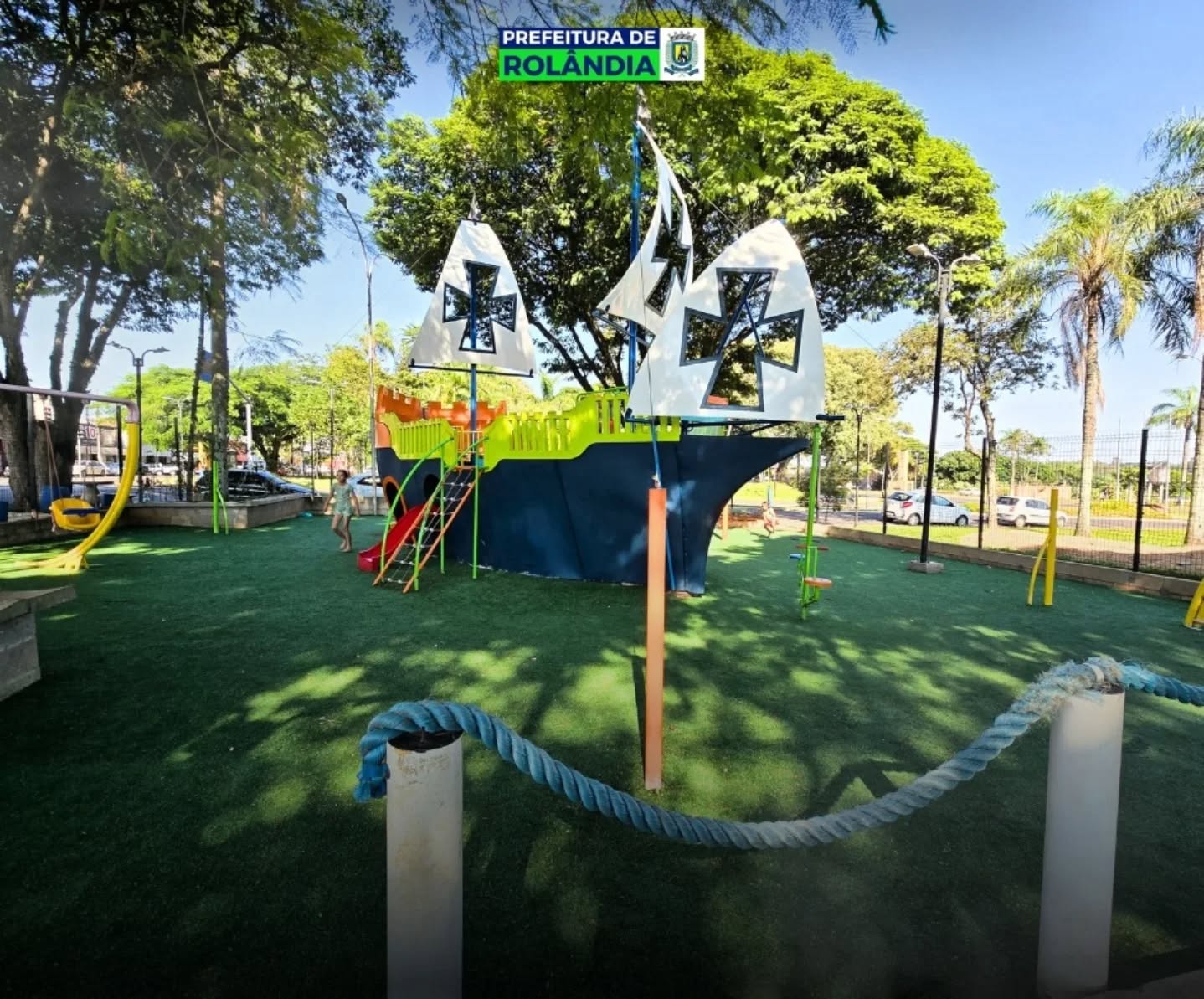 O parque temático infantil, em formato de caravela, na Praça Presidente Tancredo Neves, na região central de Rolândia, recebeu um importante reforço no bem-estar das crianças.