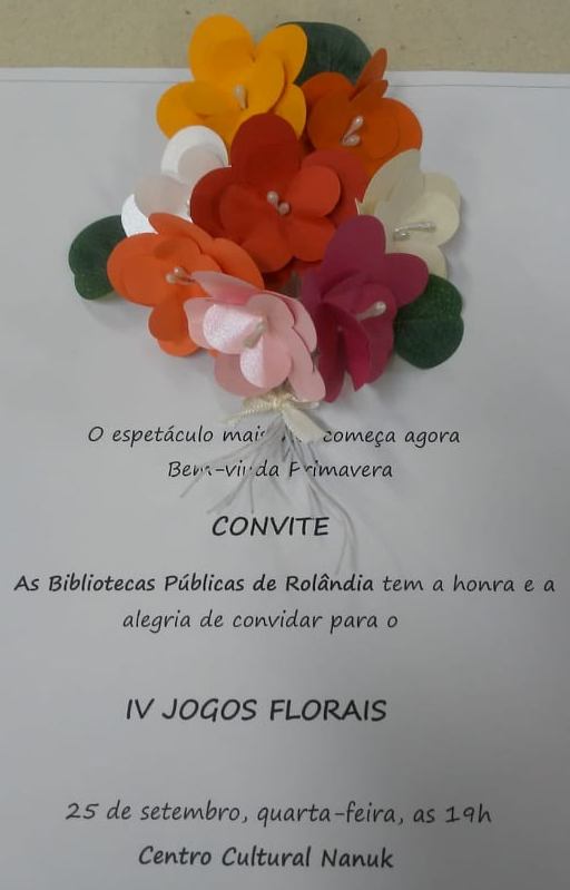 O espetáculo mais belo do ano começa agora. Bem-vinda, primavera! As Bibliotecas de Rolândia, realizarão em setembro, os Jogos Florais, que tem por finalidade estimular o sucesso escolar dos alunos, desenvolvendo o gosto pela leitura, atr...