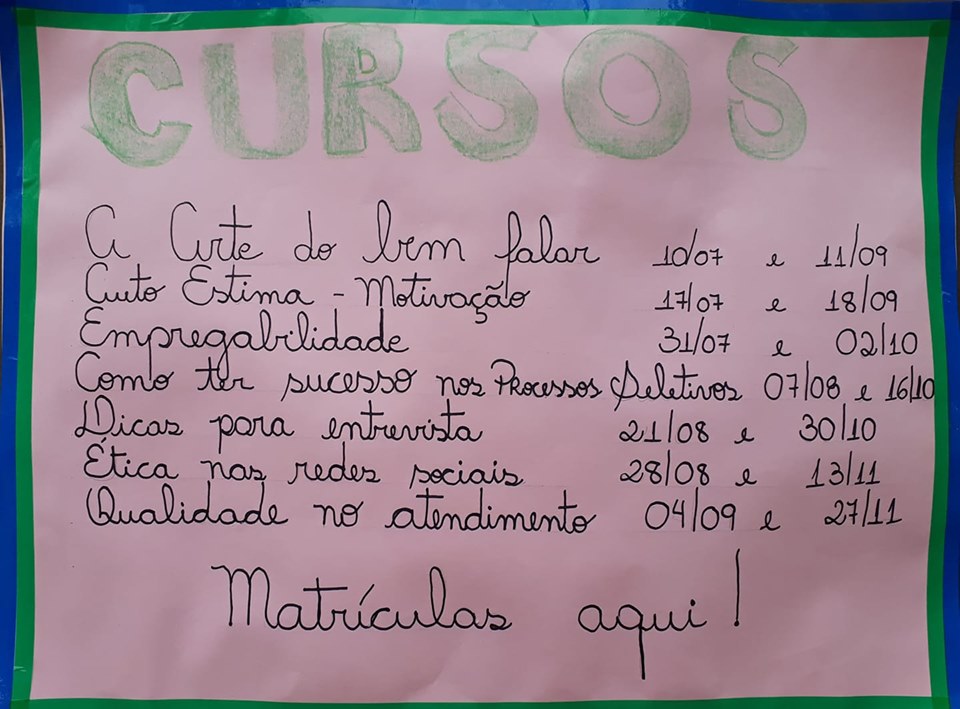 Está desempregado e quer uma oportunidade no mercado de trabalho? O Centro de Referência da Assistência Social (CRAS) pode contribuir nesse processo. Estão acontecendo CURSOS DE PREPARAÇÃO PARA O MERCADO DE TRABALHO, em parceria com o CIEE. S...