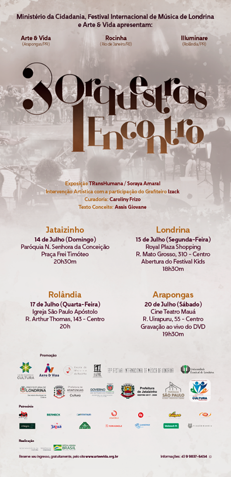 A 39ª edição do (FIML) traz na programação artística o concerto “Três Orquestras: um encontro” com apresentação dia 17 (quarta) em Rolândia (PR). O concerto será realizado por uma grande orquestra formada pela união das orquestras...