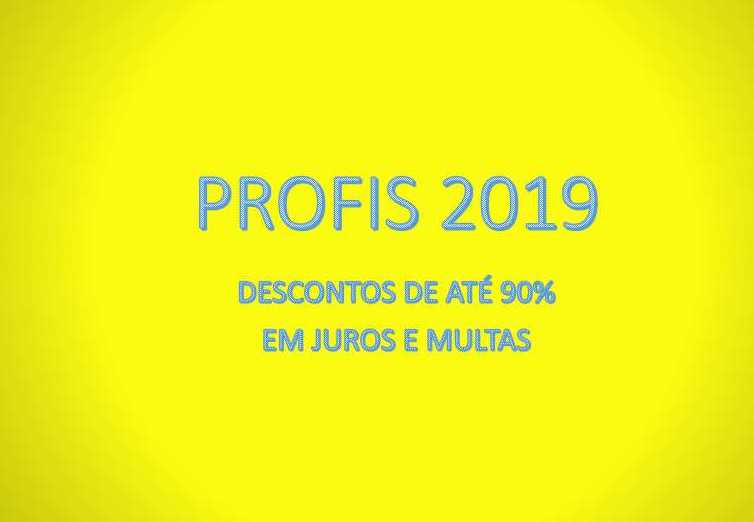 A Secretaria de Finanças comunica que o Programa de Regularização Fiscal (Profis) 2019 está em vigor, agora com descontos de até 90% em multas e juros (para débitos de até 31/12/2018). Basta procurar o setor de Tributação no ...