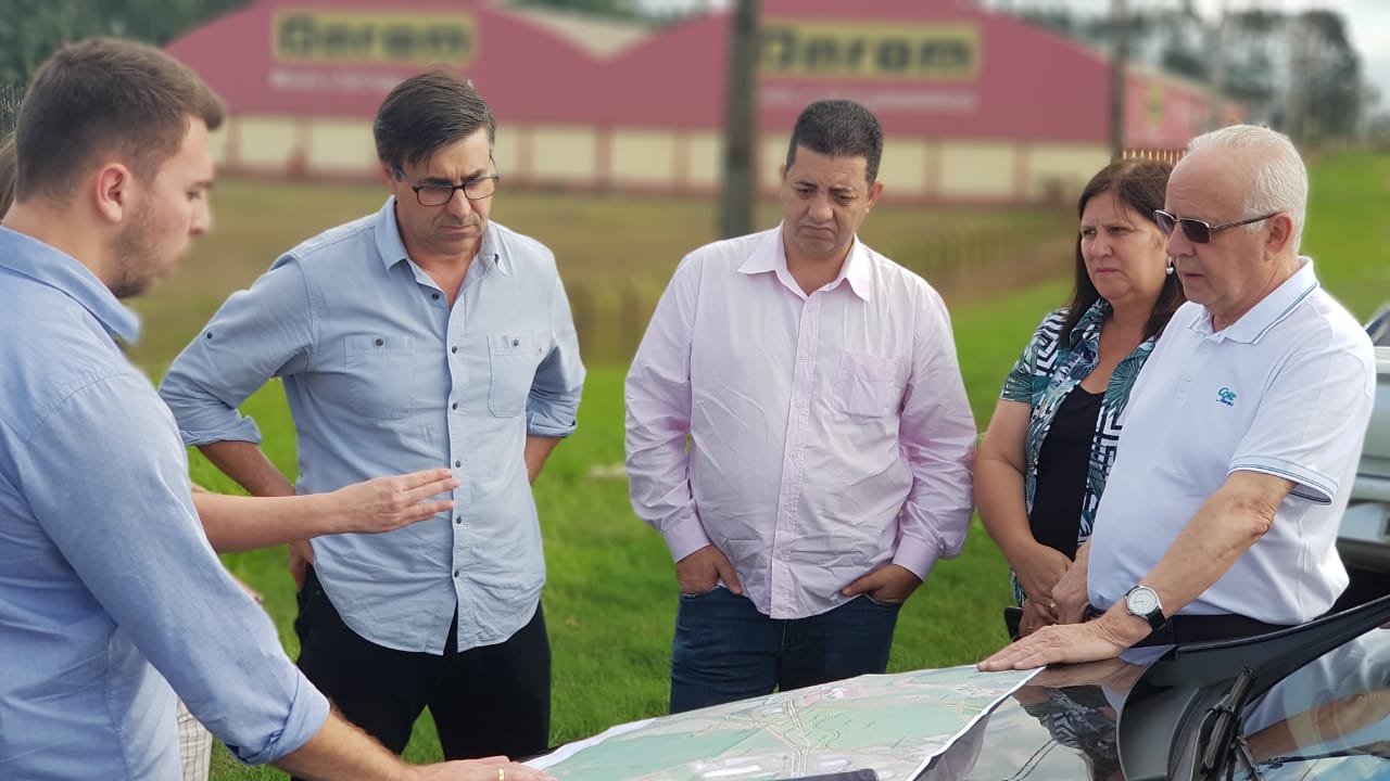 Os Secretários de Desenvolvimento Econômico, Ernesto Nogueira, e de Planejamento, Catarina Schauff, o Deputado Estadual Cobra Repórter e a Vereadora Edileine Griggio acompanharam uma visita técnica do Superintendente Regional Norte do Departame...
