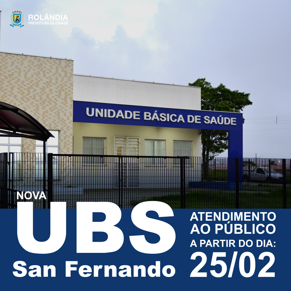 A Secretaria de Sáude informa que a nova sede da Unidade Básica de Saúde (UBS) do Jd. San Fernando iniciará o atendimento ao público a partir do dia 25 de fevereiro. No dia 22 não haverá atendimento devido a mudança para a nova sede. A Secr...