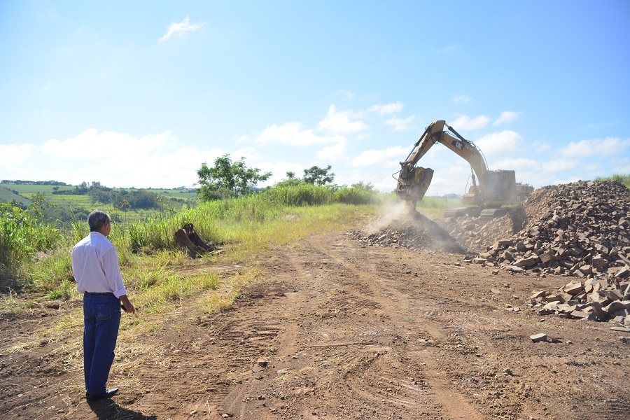 O Prefeito Interino Roberto Negrão foi até a pedreira municipal para verificar os testes de um equipamento que poderá facilitar a manutenção das estradas rurais de Rolândia. A "Concha Vibratória" tritura pedras para produzir o cascalham...