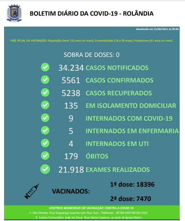 MAIS DE 18 MIL ROLANDENSES JÁ RECEBERAM AO MENOS UMA DOSE DE VACINA CONTRA A COVID-19...