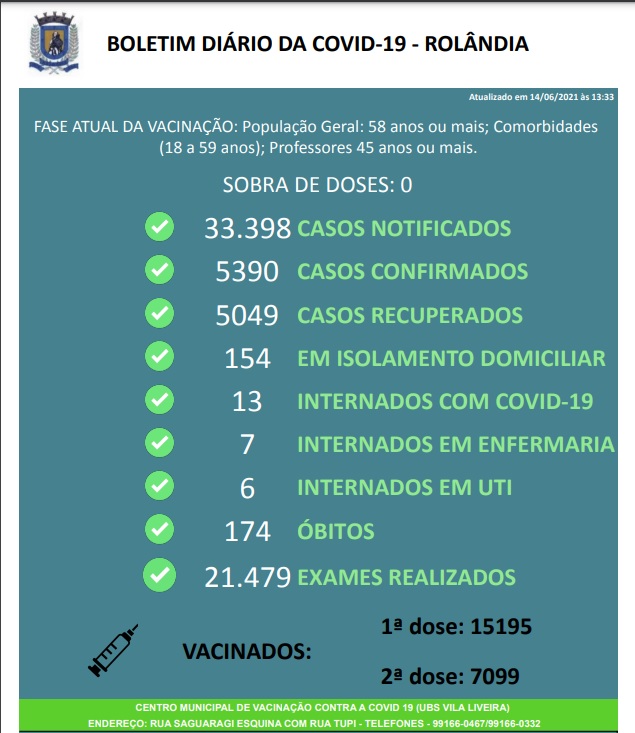 Com pesar e solidariedade aos familiares e amigos, a Secretaria Municipal de Saúde informa um óbito registrado em decorrência de covid-19: 57 anos, sexo masculinoInternado no Hospital São RafaelÓbito em 13/06/2021Exame positivo em 10/06/2021Com...
