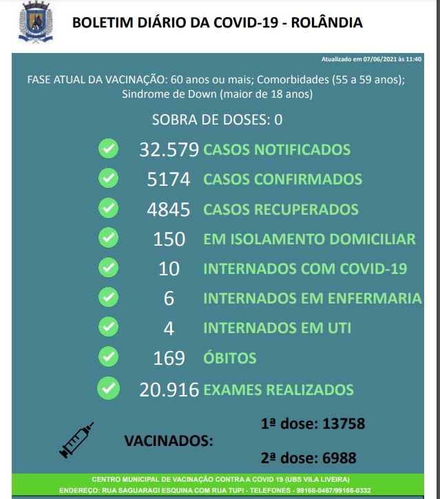 A Secretaria Municipal de Saúde de Rolândia informa que, sobre a possibilidade de uma suposta paciente de Apucarana, que teria sido contaminada por uma cepa em especial de covid-19 e ter tido contato com parentes em Rolândia, segue esclarecimento....